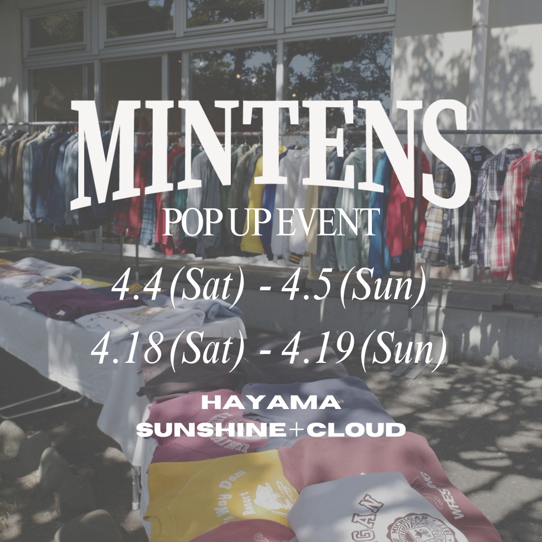 2026年4/4(土) ~ 4/5(日) 、4/18(土) ~ 4/19(日)湘南・葉山にあるライフスタイルショップ SUNSHINE+CLOUDにて、Flea MarketとしてMINTENSがポップアップ出店します。