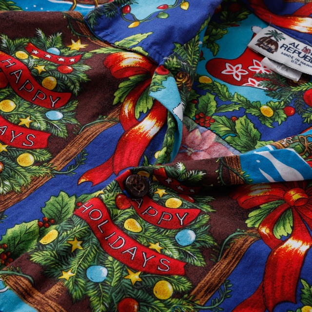 【極美品】Vintage Hawaiian shirt big size made in USA mint condition /ヴィンテージ 半袖 シャツ トップス アロハシャツ クリスマス サイズM 希少 USA製