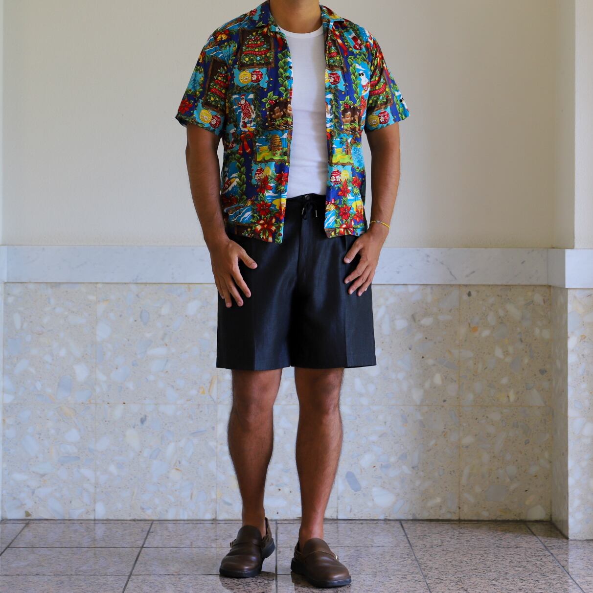 もちろんシャツ一枚で着るのも素敵ですが、ゆったりシルエットのシャツにあえて大きめの紺ブレやGジャンにチノパンやミリタリーパンツ、ジーンズや短パン合わせなども上品な組み合わせです。