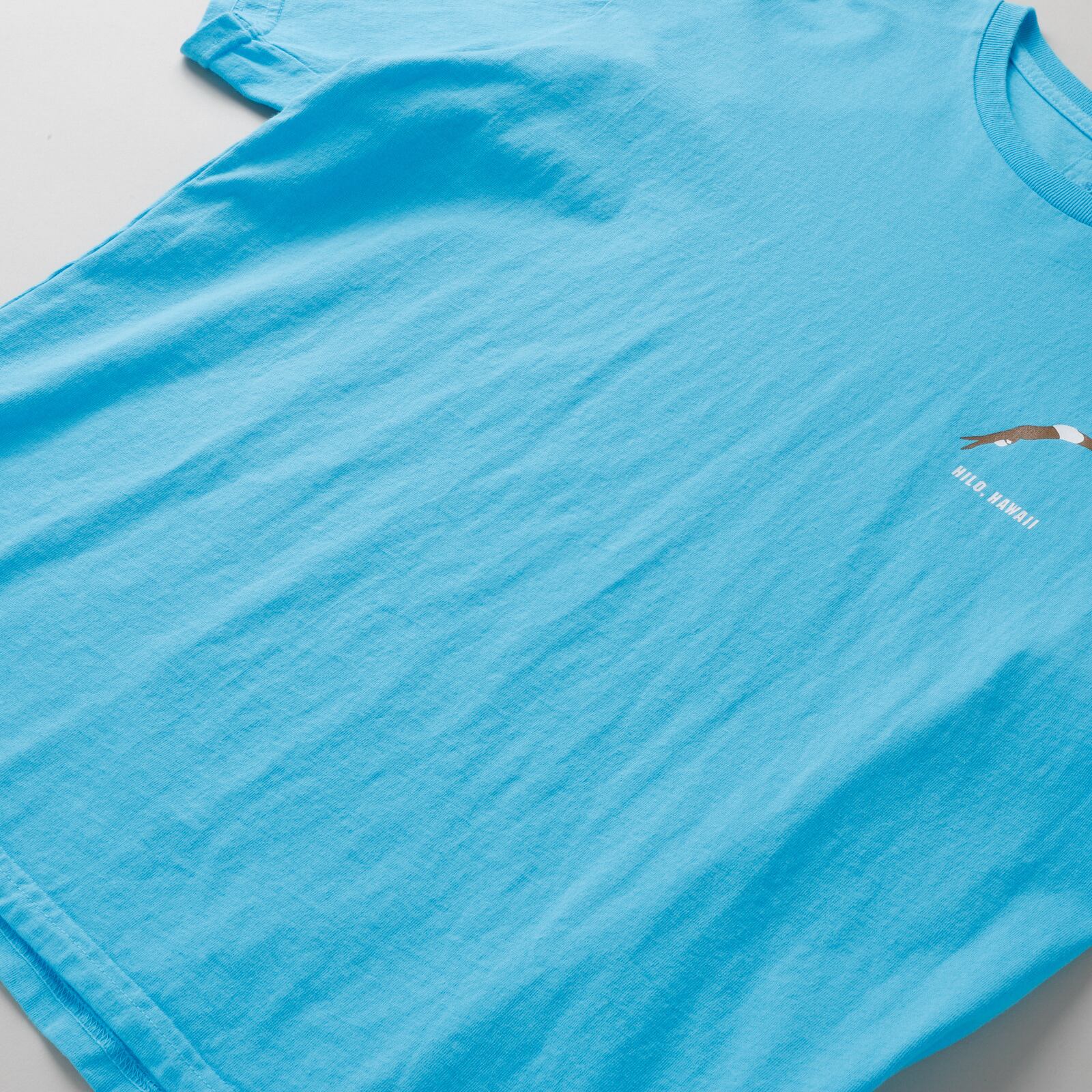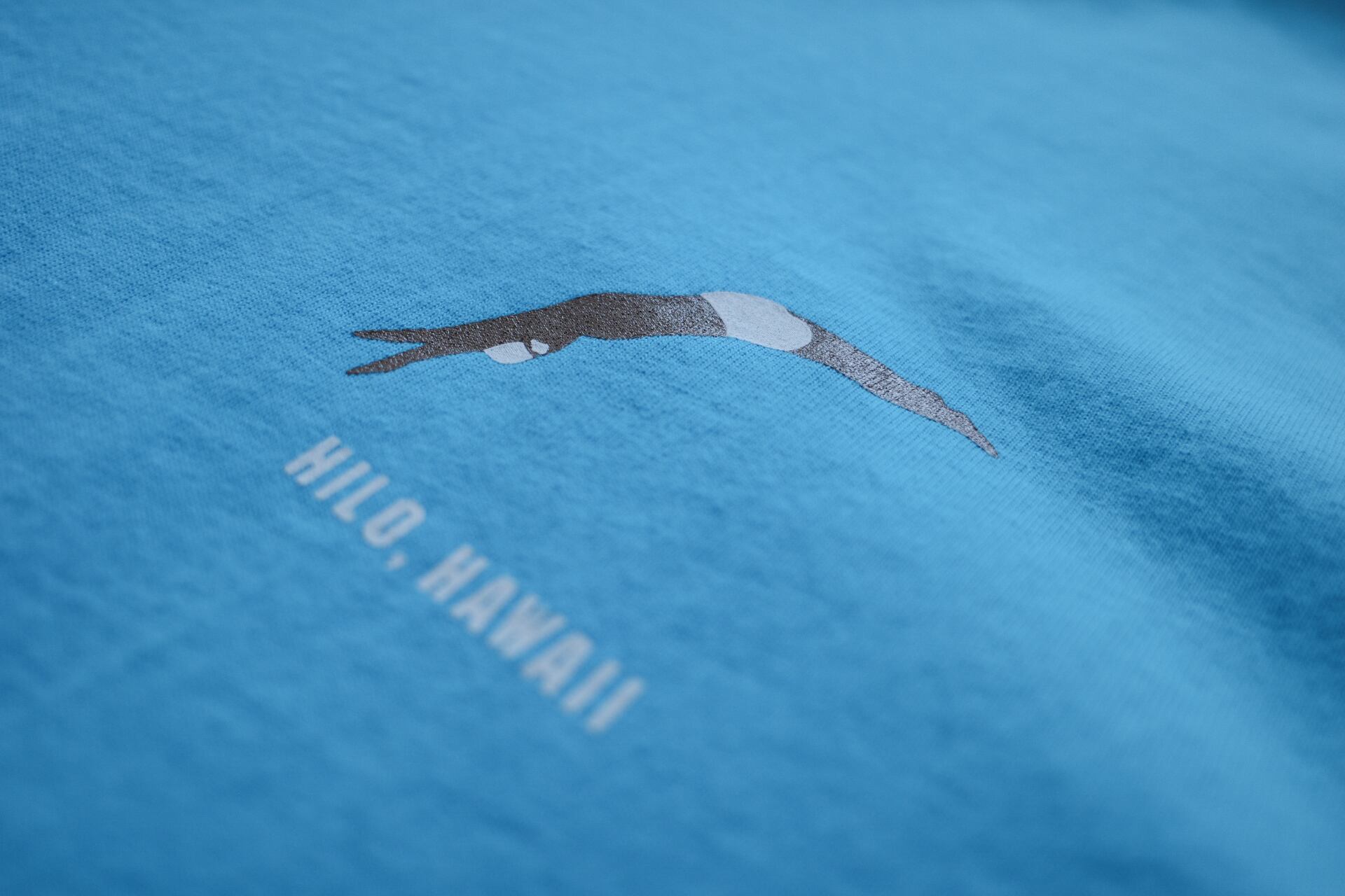 フロントには「HILO,HAWAII」、バックには「DOLPHIN BAY SWIM CLUB」のプリントTシャツ。
