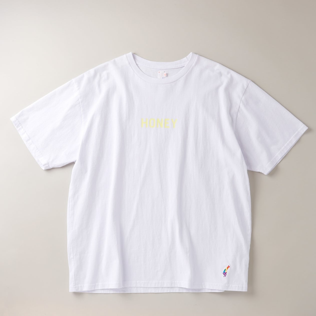 フロントには「HONEY」、バックには「BEE」のプリントTシャツ。