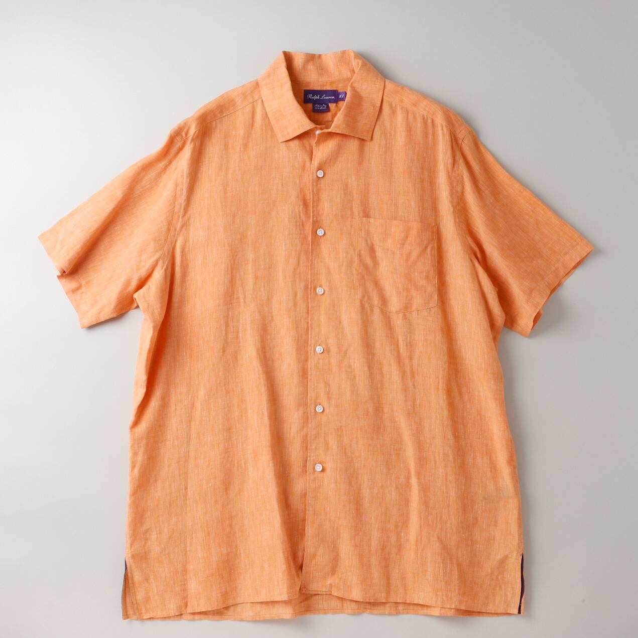 【定価8万】Ralph Lauren Purple Label special linen shirt S/S made in Italy mint condition / ラルフローレン パープルレーベル スペシャル リネン シャツ オレンジ イタリア製 サイズXL 半袖 ビッグサイズ ほぼ未使用品