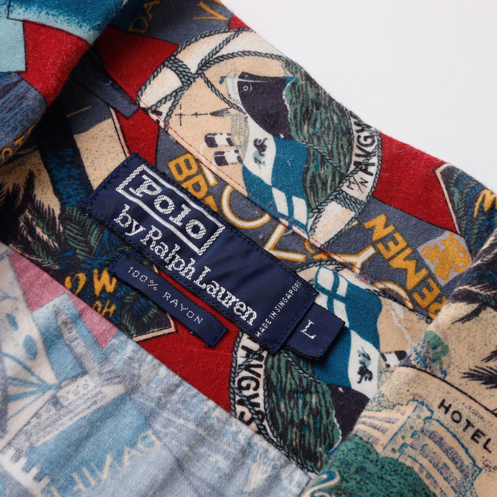 【極美品】90s Ralph Lauren special rayon open collar shirt big size S/S mint condition / ラルフローレン スペシャル レーヨン オープンカラー シャツ ビッグサイズ L サマーシャツ 夏服 ほぼ未使用品