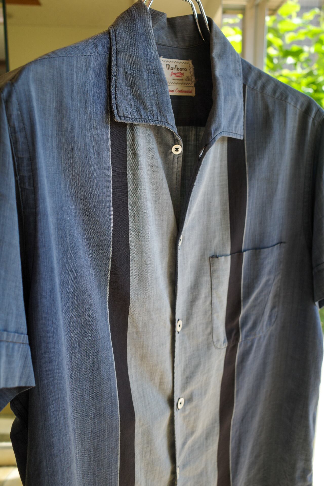 【極美品】50s special Vintage open collar cotton shirt "Marlboro" big size made in USA S/S mint condition / 50年代 スペシャル ヴィンテージ オープンカラー コットン シャツ ビッグサイズ サイズ15H 実寸M サマーシャツ アメリカ製 マルボロ