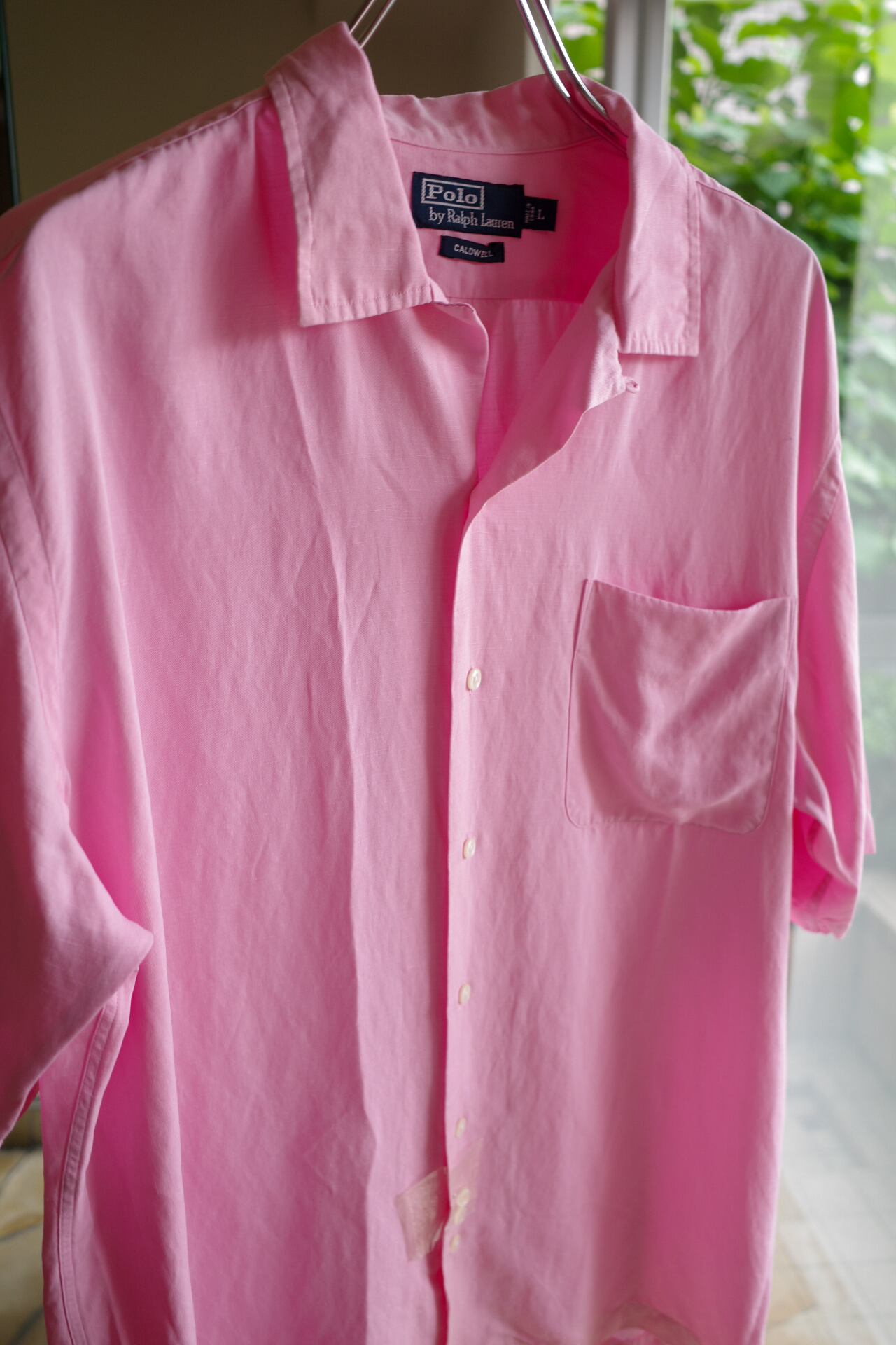 【未使用】90s Ralph Lauren special silk linen open collar shirt big size S/S "CALDWELL" pink dead stock / ラルフローレン スペシャル シルク リネン オープンカラー シャツ コードウェル ビッグサイズ サイズL ピンク サマーシャツ 夏服 未使用品 タグ付