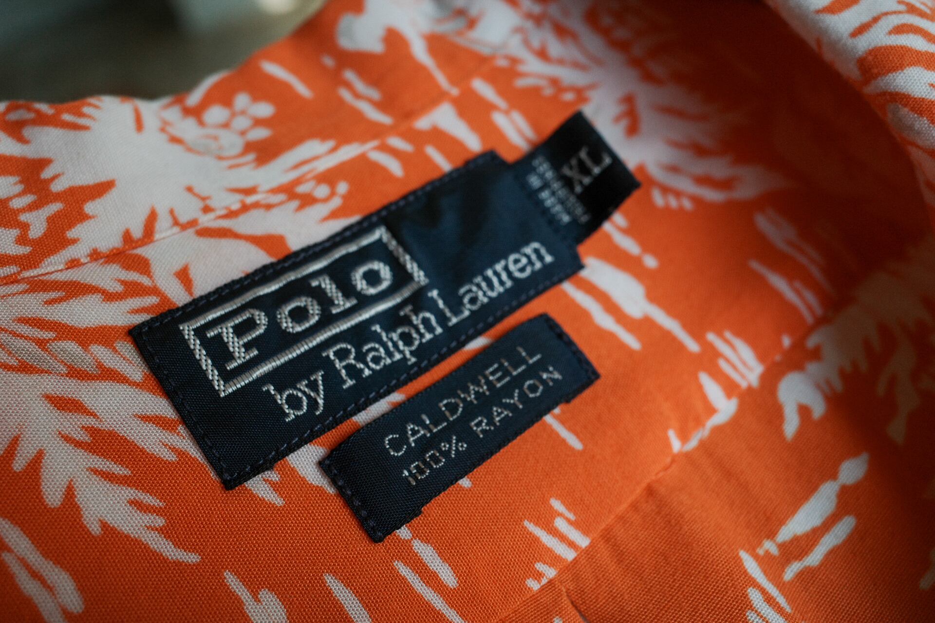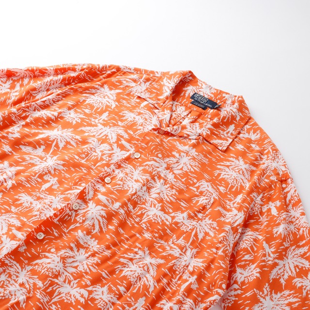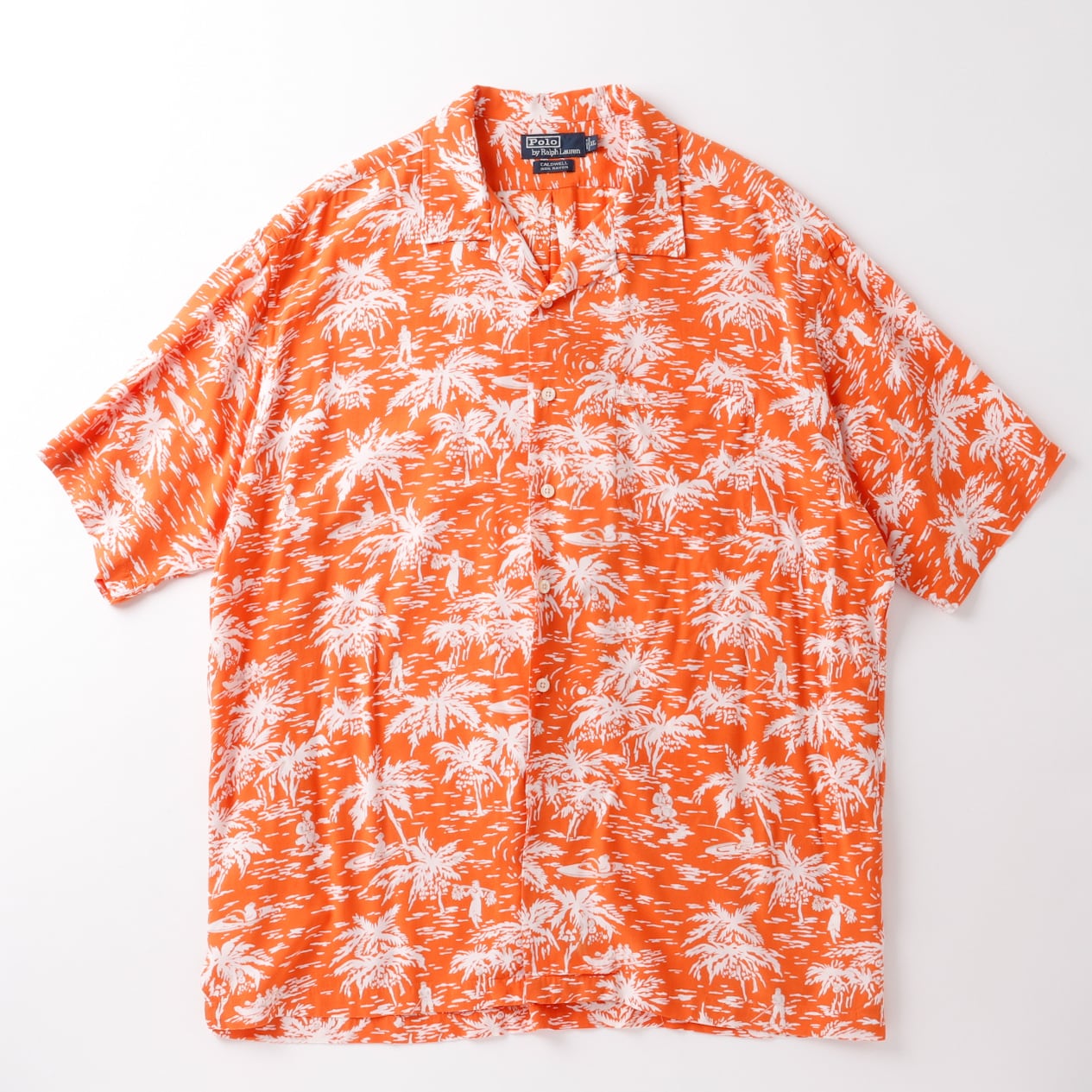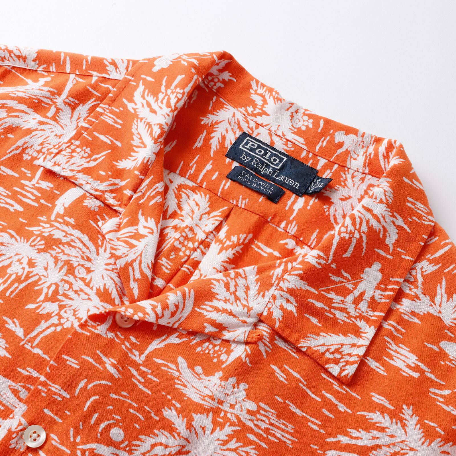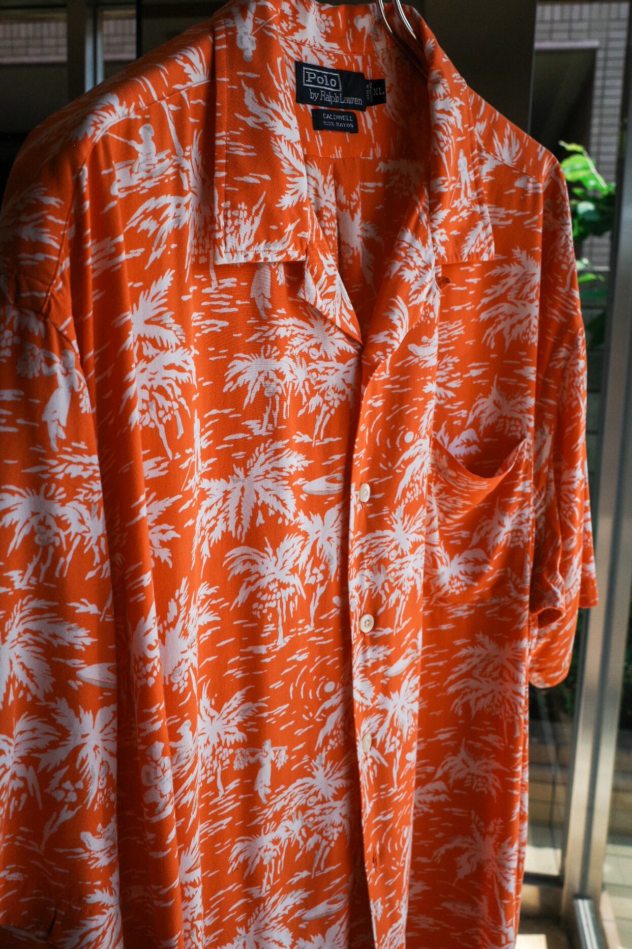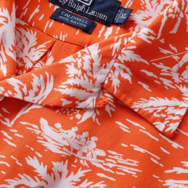 【極美品】90s Ralph Lauren special rayon open collar shirt big size S/S "CALDWELL" orange/white mint condition / ラルフローレン スペシャル レーヨン オープンカラー シャツ コールドウェル ビッグサイズ XL オレンジ/黒 サマーシャツ 夏服 アロハ