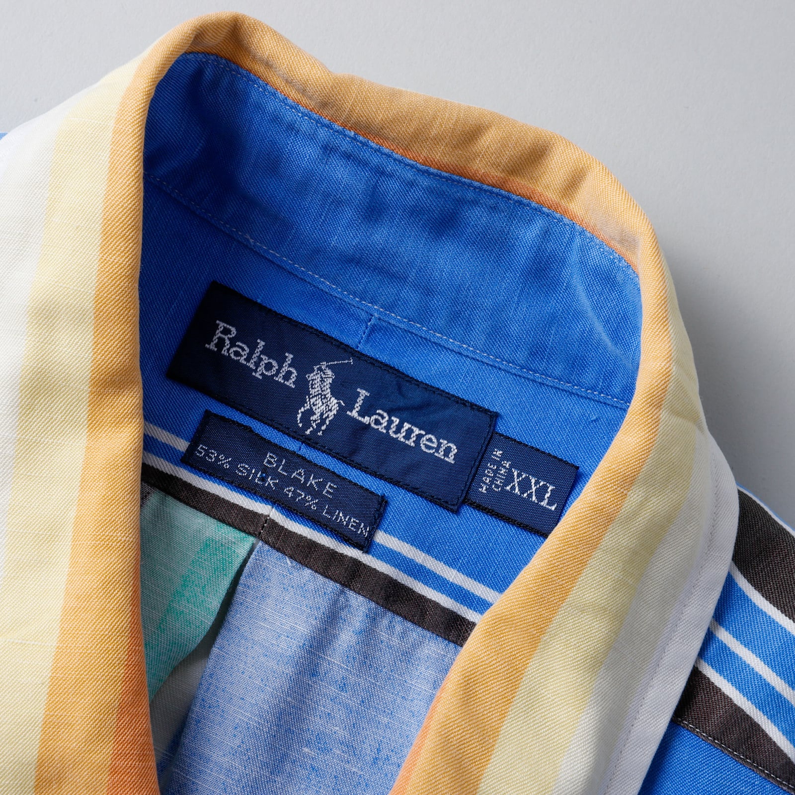 【極美品】80s Ralph Lauren special silk linen shirt Blue Stripe big size "BLAKE" / ラルフローレン スペシャル シルク リネン シャツ ブルー ストライプ 長袖 ビッグサイズXXL