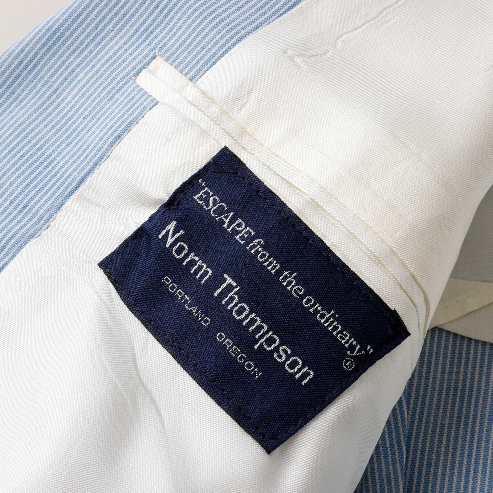 【未使用】70s Norm Thompson special cotton seersucker Jacket blazer about size38 made in USA dead stock / 70年代 ヴィンテージ コットン シアサッカー ジャケット 実寸サイズ38 M程度 アメリカ製 ブルー テーラードスタイル