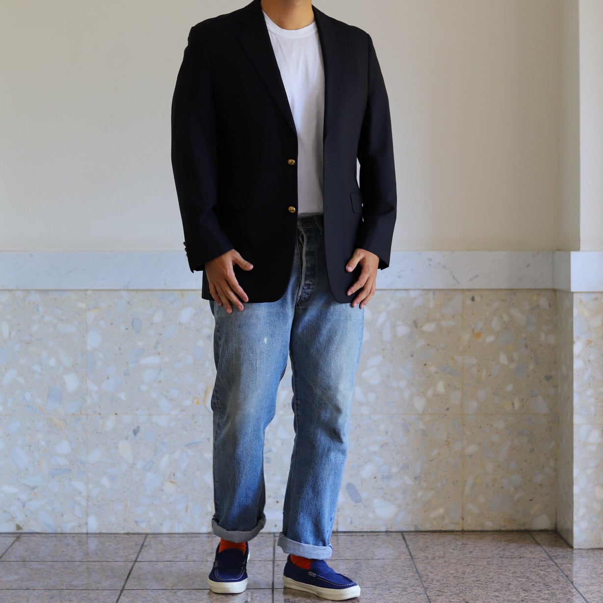 ロロピアーナ生地のカナダ製ブルックスブラザーズの紺ブレ。