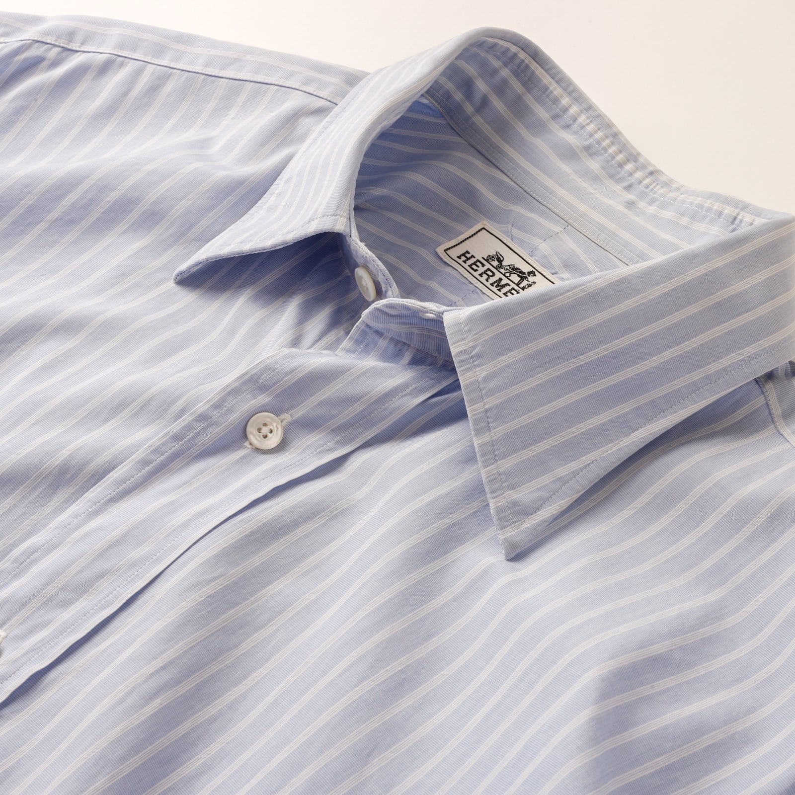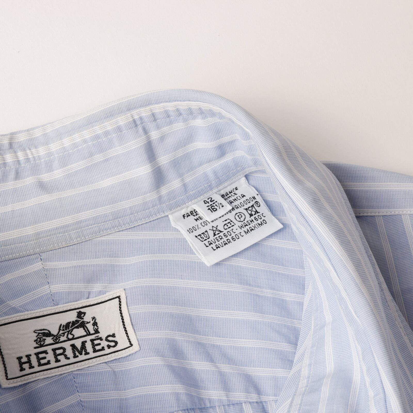 エルメス スペシャル コットン ストライプ シャツ ブルー フランス製