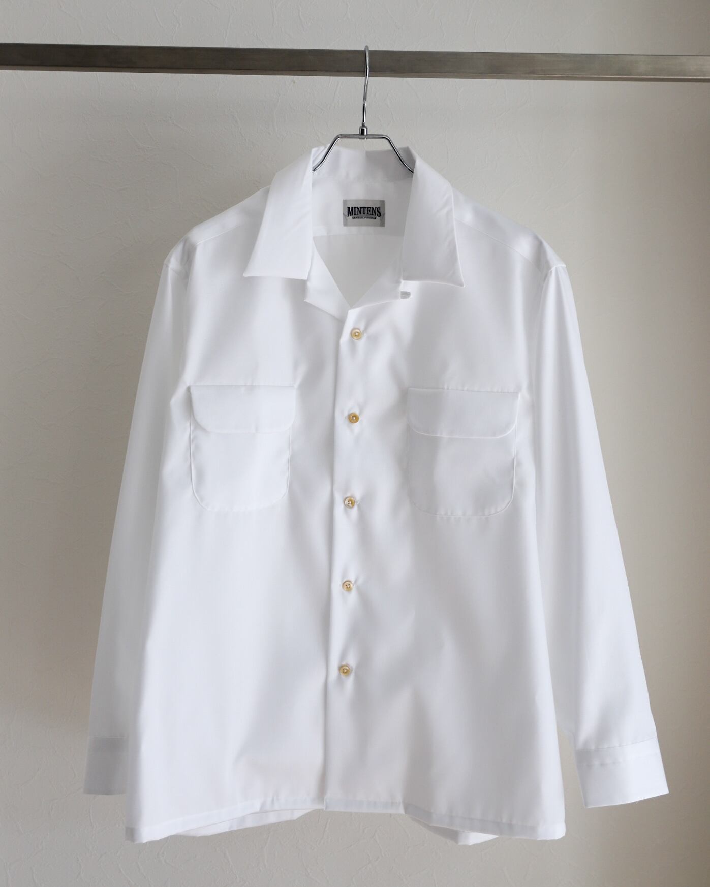 【新品】MINTENS 1960s vintage broad cotton shirts made in France fabrics made in JAPAN/ フランス製 ヴィンテージ生地 ブロード コットン オープンカラー シャツ ホワイト オリジナルブランド 1960年代シルエット サイズ①