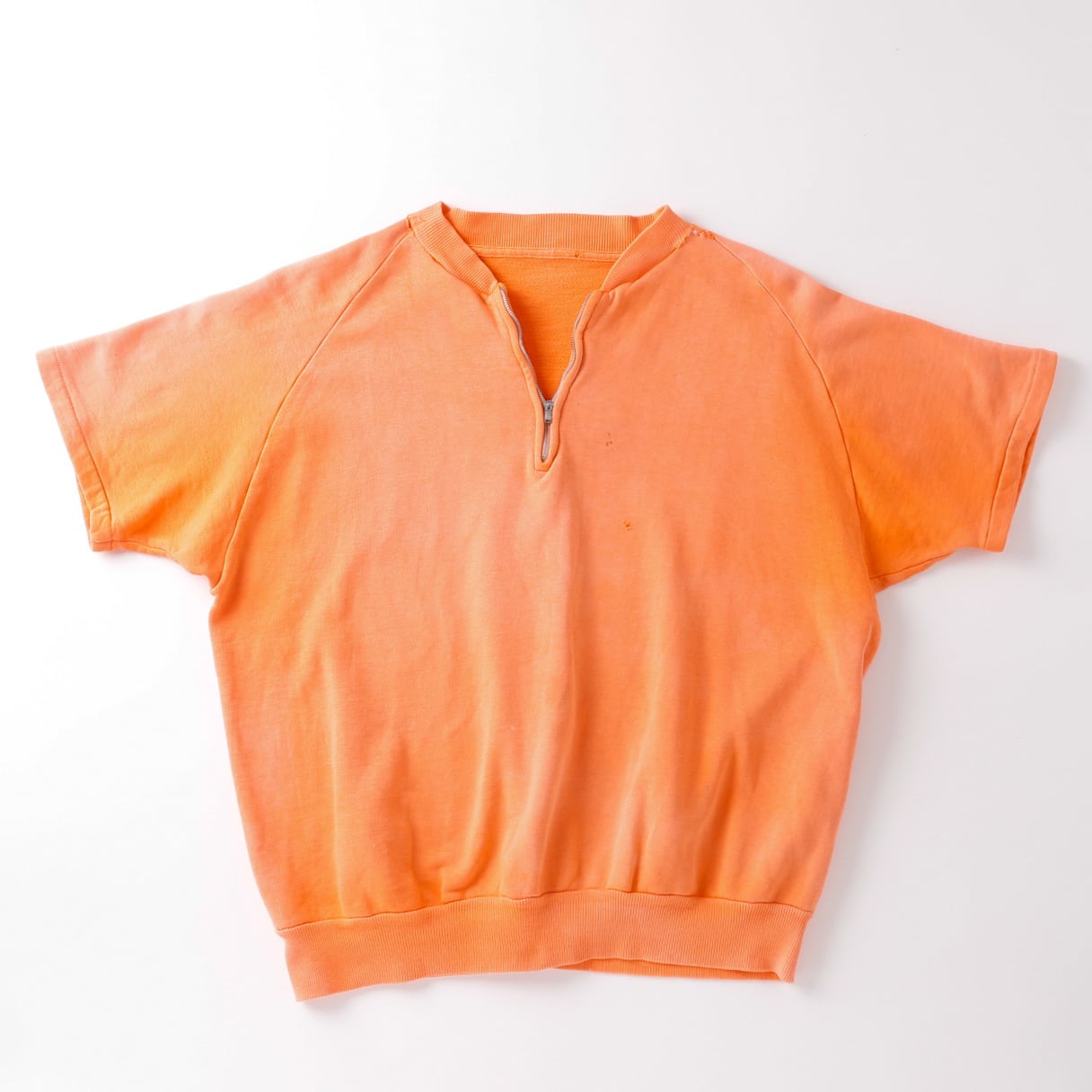 【希少】50s special vintage s/s raglan sweat shirt half zip fade orange mint condition big size FALCON zipper / 50年代 ヴィンテージ ラグラン ハーフ ジップ 半袖 スウェットシャツ トレーナー USA製 実寸サイズXL フェードオレンジ ミントコンディション ファルコンジッパー