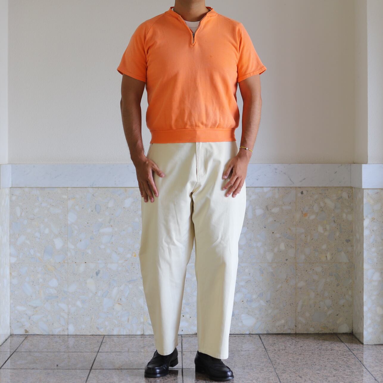 1950年代、フェードオレンジのラグラン ハーフジップ スウェット。。