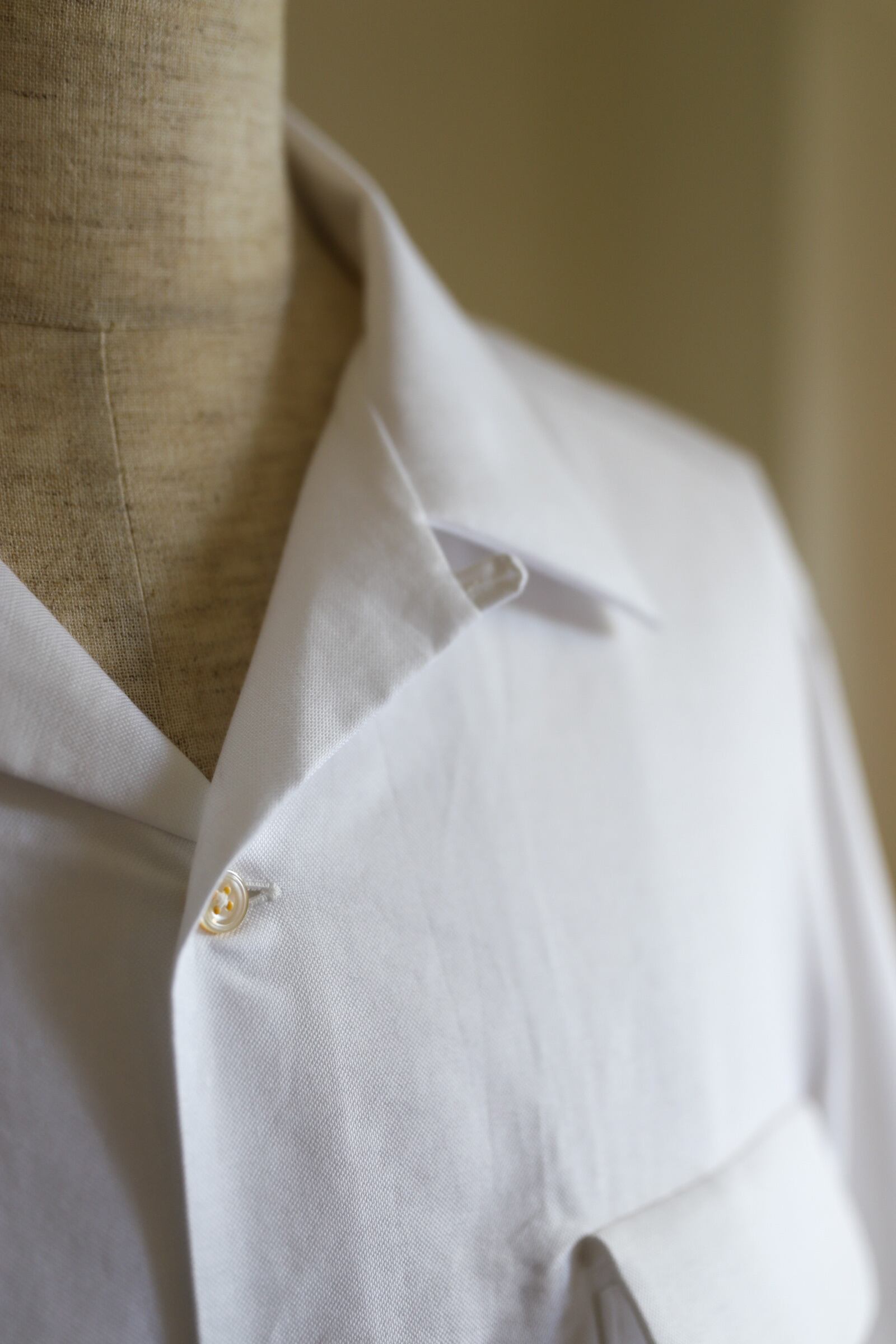 【新品】MINTENS AmericanSea Island Cotton Oxford shirt made in USA fabrics 1960s vintage open color shirts made in JAPAN/ アメリカ製 高級シーアイランド コットン オックスフォード シャツ ホワイト 日本製 オリジナルブランド 1960年代シルエット オープンカラーシャツ サイズ M・L