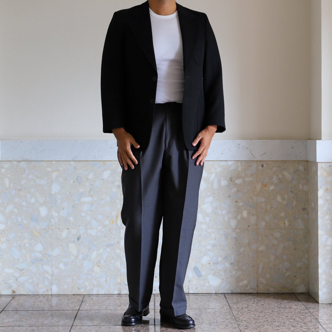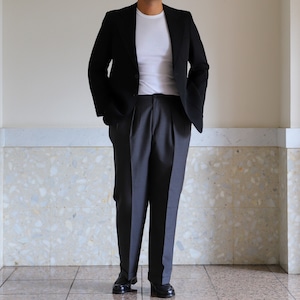 フォーマル合わせでも素敵ですが、サラッと羽織ってスラックスやデニム、ミリタリー パンツなどに合わせるのも抜群。