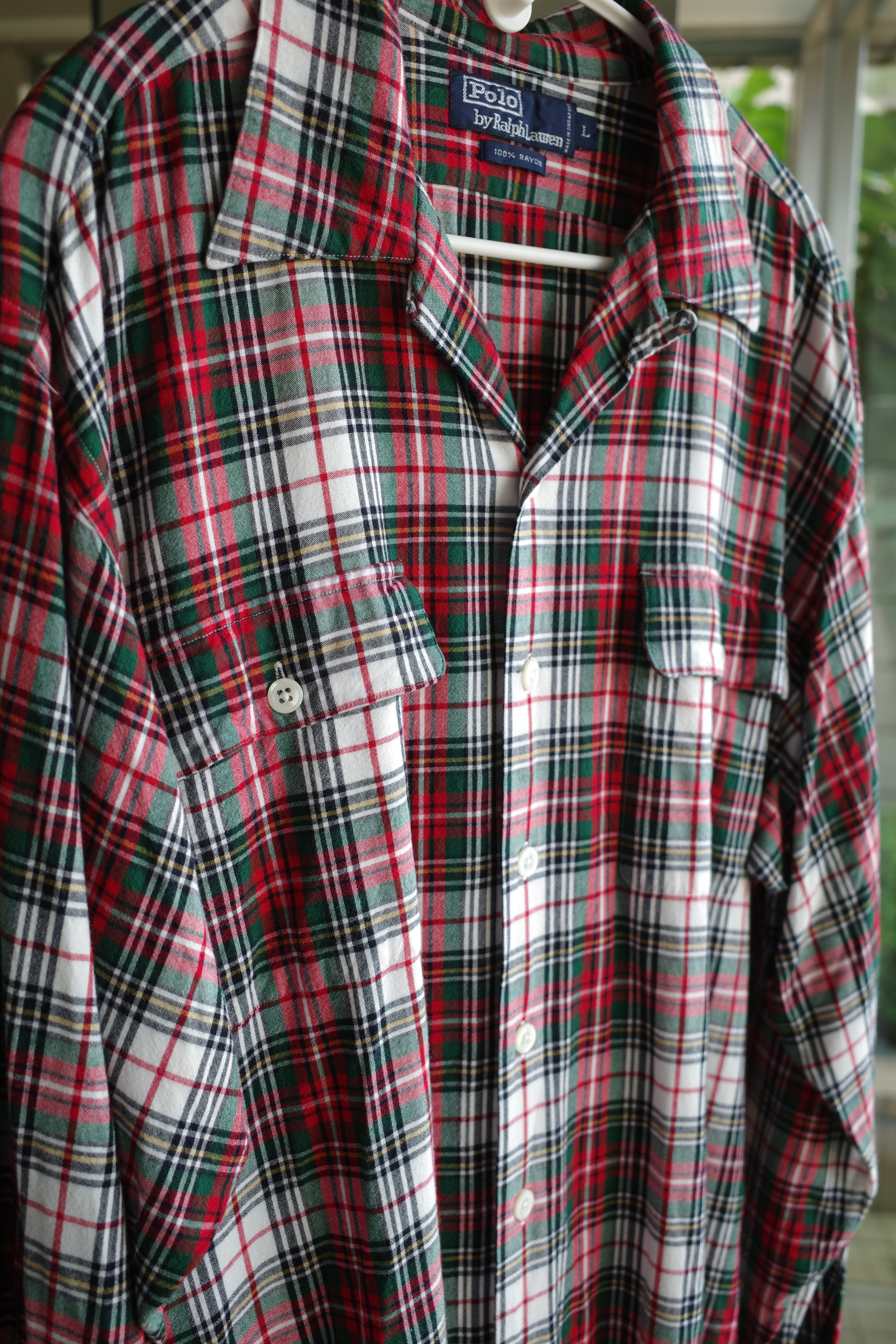 【極美品】80s Ralph Lauren special rayon open collar shirt big size mint condition / ラルフローレン スペシャル レーヨン オープンカラー シャツ 長袖 ビッグサイズ L チェックシャツ