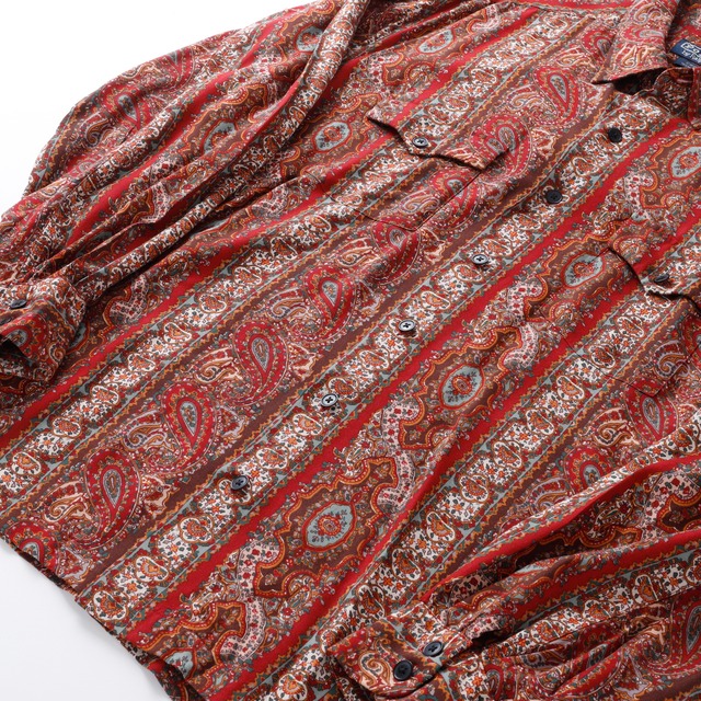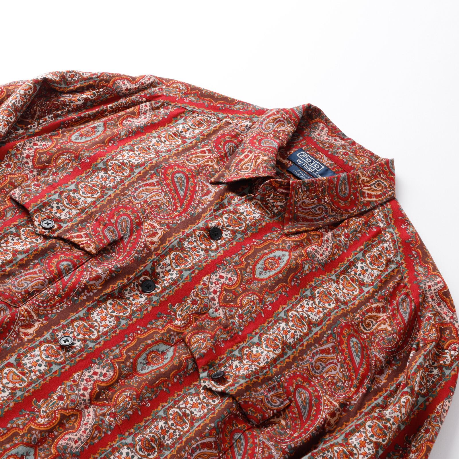 90s Ralph Lauren special rayon shirt big size L/S "CROFTS" Paisley dead stock