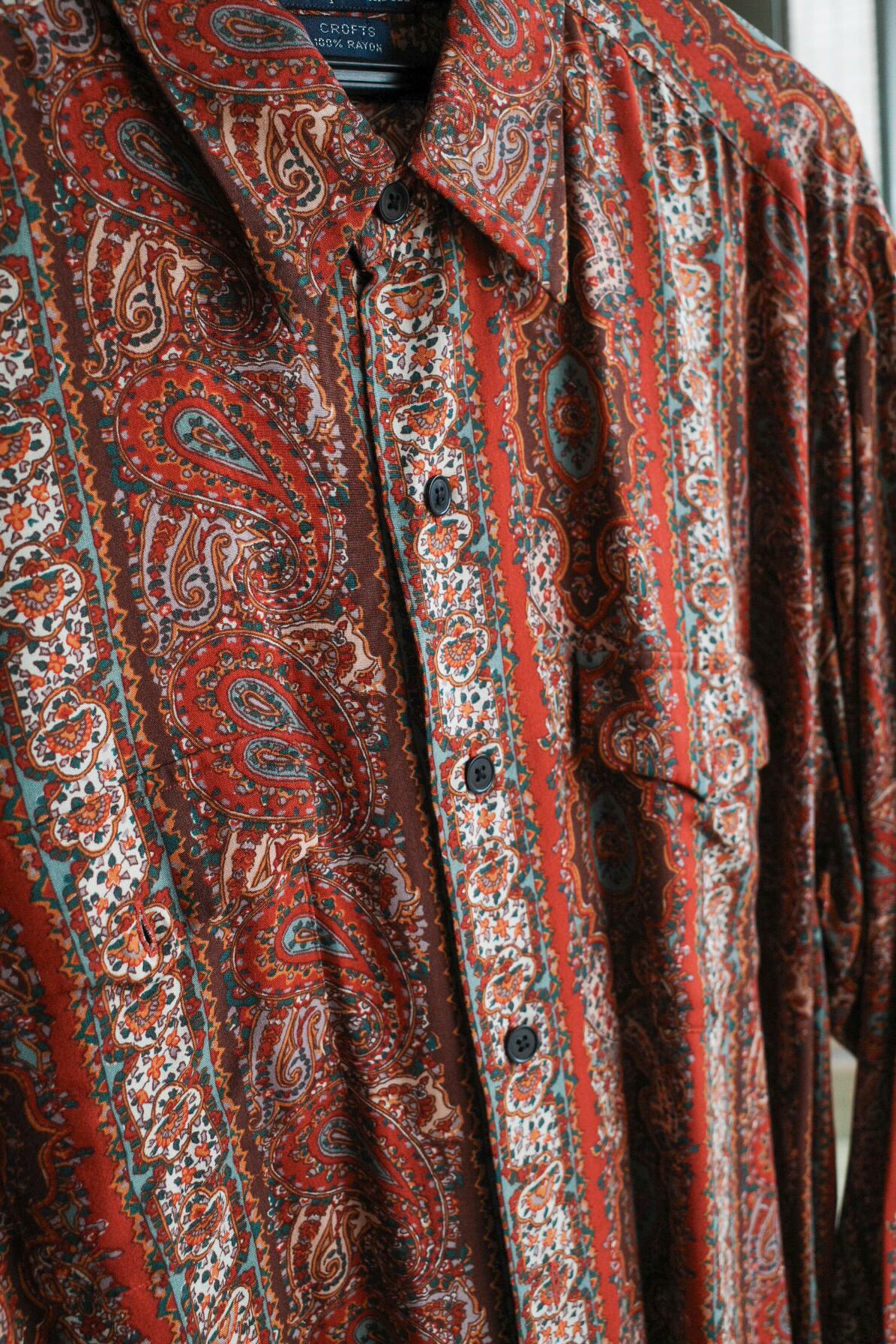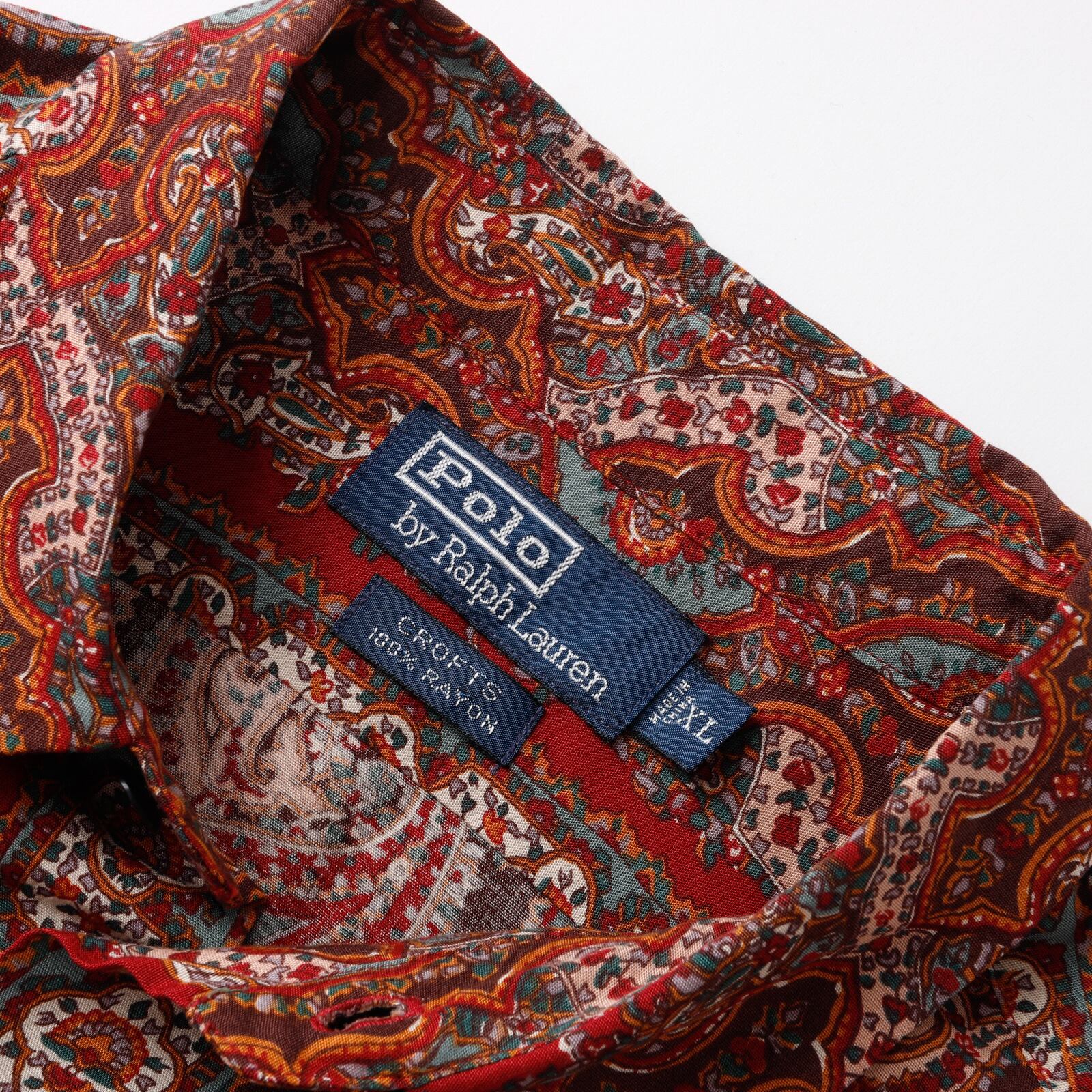 【未使用】90s Ralph Lauren special rayon shirt big size L/S "CROFTS" Paisley dead stock / ラルフローレン スペシャル レーヨン シャツ 長袖 ビッグサイズ XL ブラウン レッド ペイズリー デッドストック