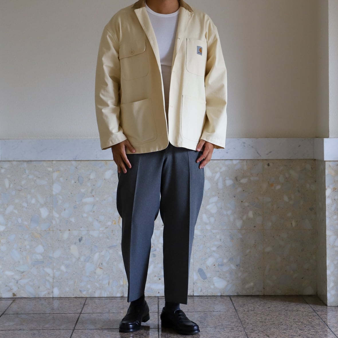 シャツをインしてジャケットパンツスタイルの組み合わせでもいいですが、カジュアルにオーバーサイズのTシャツやシャツ、ニットなどをサラッと羽織るのもお勧め。