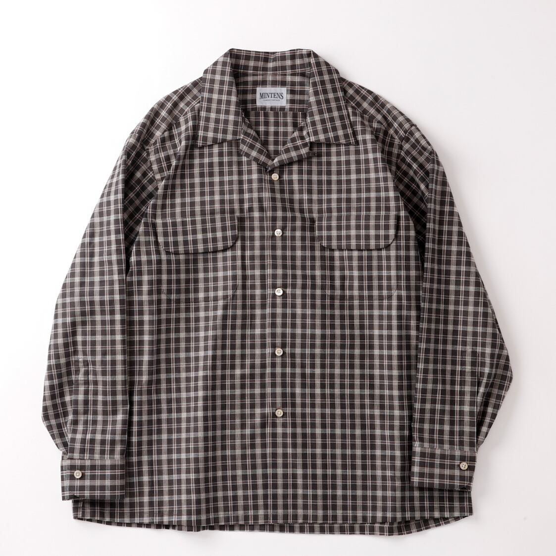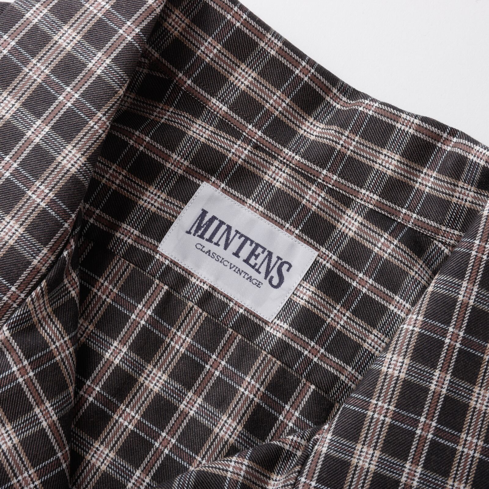 【新品】MINTENS 1960s vintage cotton shirts made in Italy fabrics made in JAPAN/ イタリア製 ヴィンテージ生地 コットン オープンカラー シャツ チェック柄 ブラウン オリジナルブランド 1960年代シルエット サイズ①