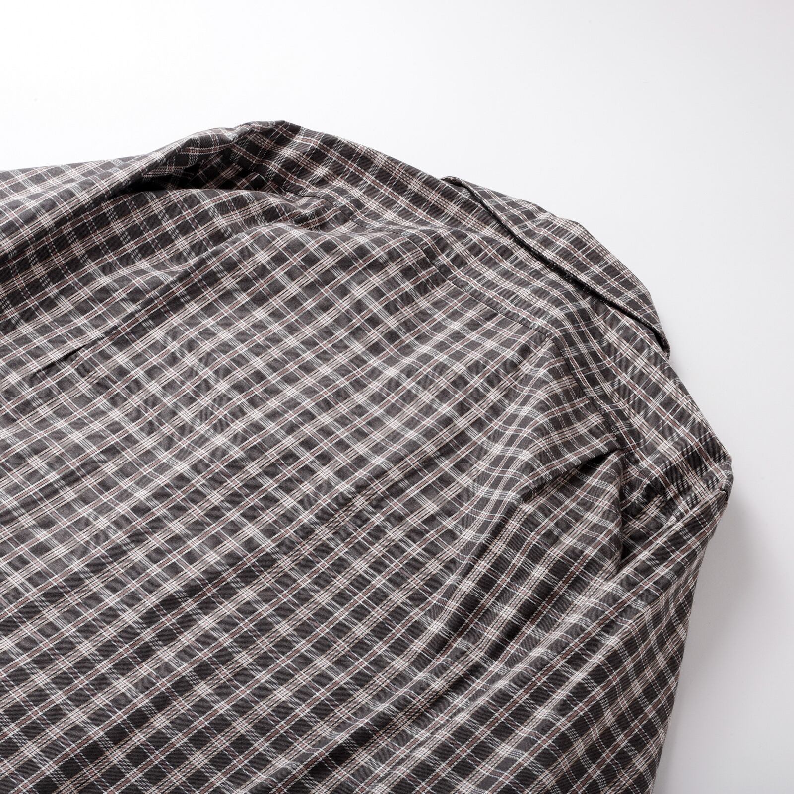 イタリア製 ヴィンテージ生地 コットン オープンカラー シャツ チェック柄 ブラウン