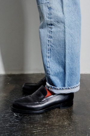 流行にとらわれず長年使えるシルエット、シンプルなデザインになりますのでとても使い勝手の良いデニムパンツになります。