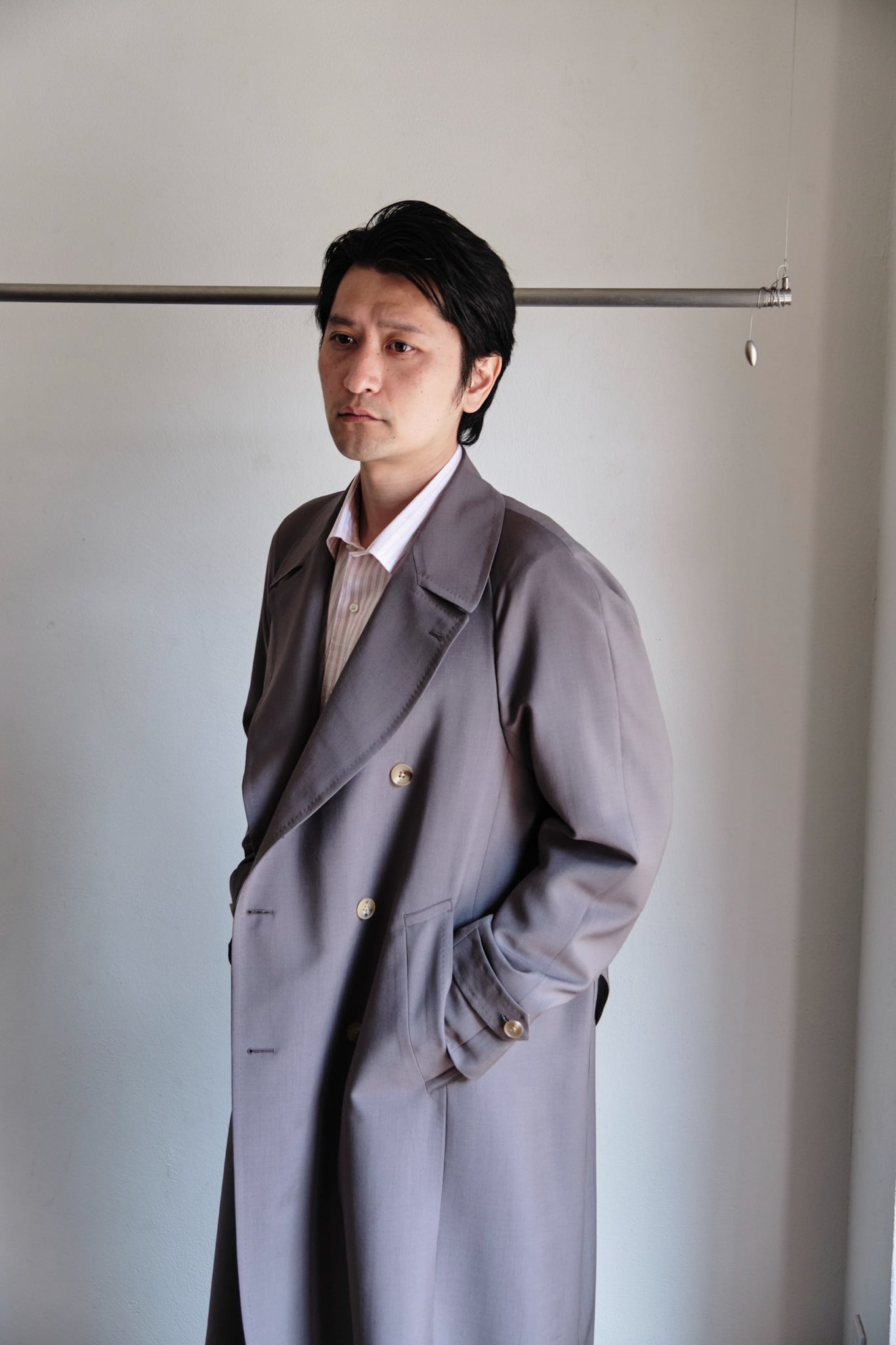 古い年代の英国製ダブルコートを参考に、ラペルの太さやシルエットなど身幅にゆとりを持たせつつ着丈もアレンジ。