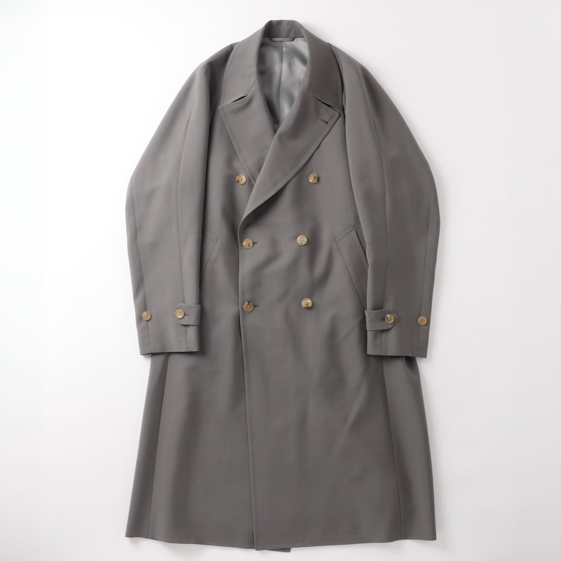 【新品】MINTENS Vintage 70s ENGLAND wool mohair Fabric "DORMEUIL" double raglan coat made in JAPAN /英国製 ヴィンテージ生地 ウール モヘア "ドーメル" ダブル コートラグランコート カーキグレー 日本製 実寸US46 L~XL程度