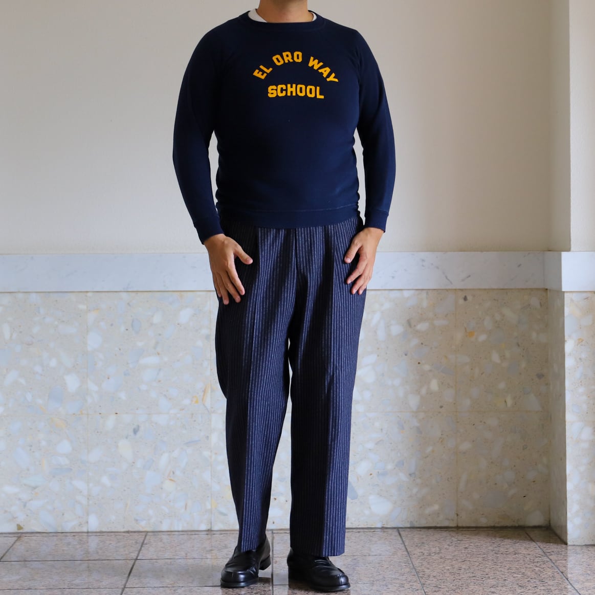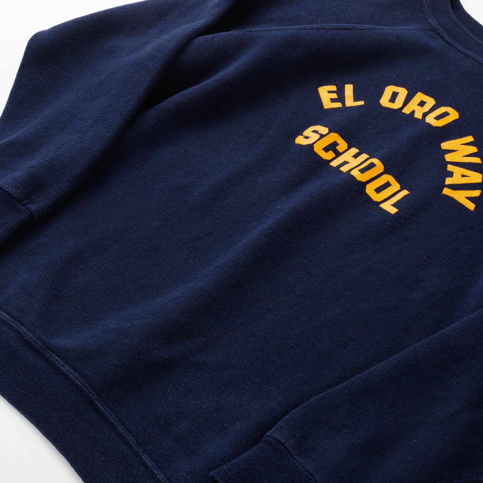 【極美品】70s special vintage raglan sweat shirt "EL ORO WAY SCHOOL" made in USA fade NAVY size42 big size / 70年代 ヴィンテージ 長袖 ラグラン袖 スウェットシャツ トレーナー USA製 サイズ42 実寸L ビッグサイズ フェード ネイビー