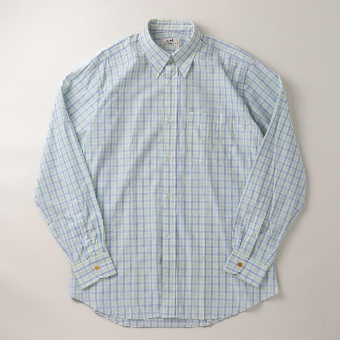 エルメス スペシャル コットン チェック シャツ フランス製 サイズ42 実寸XL