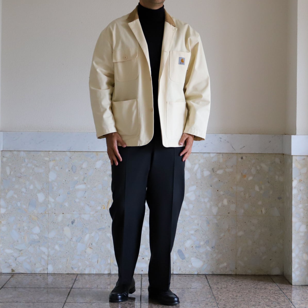 シャツをインしてジャケットパンツスタイルの組み合わせでもいいですが、カジュアルにオーバーサイズのTシャツやシャツ、ニットなどをサラッと羽織るのもお勧め。