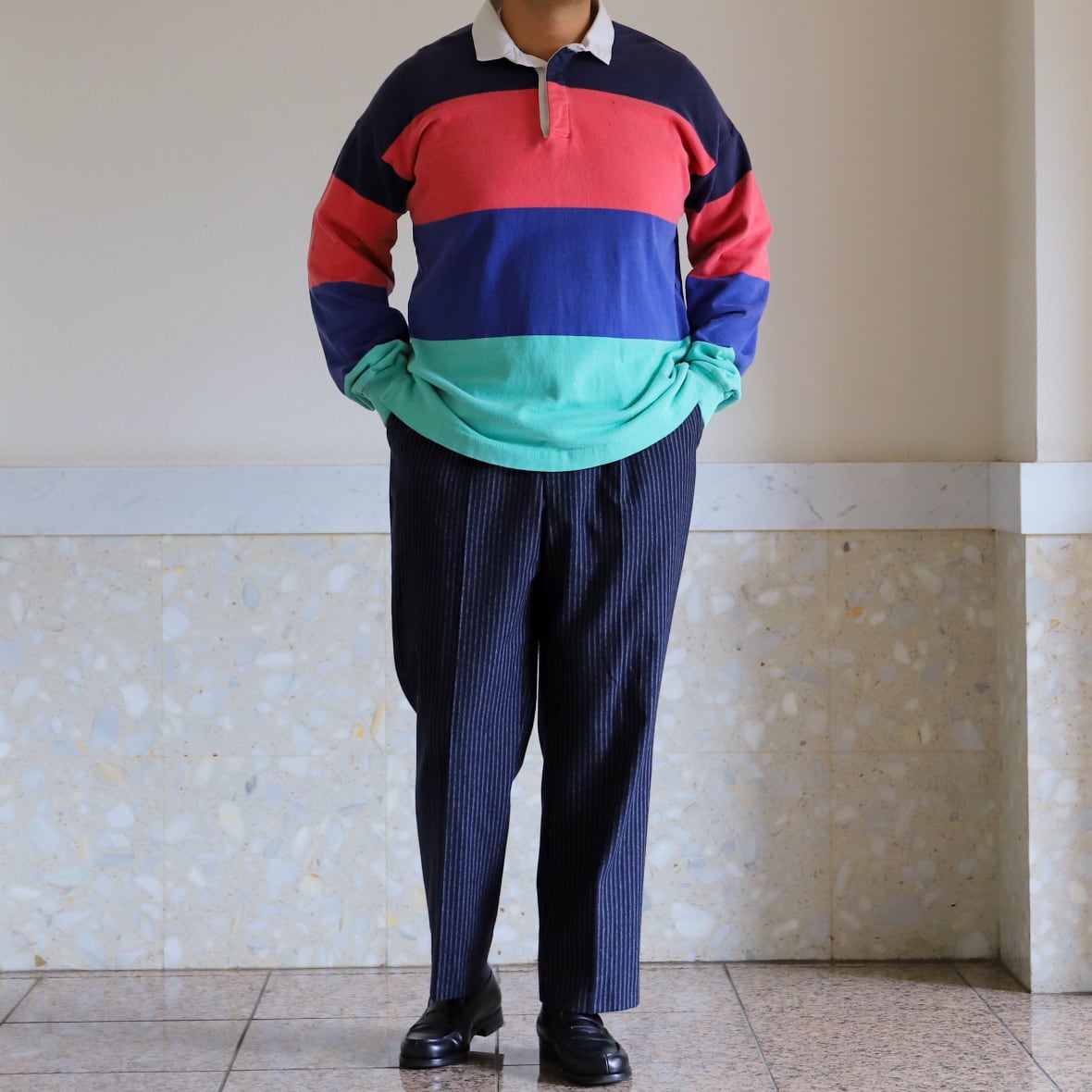 【極美品】80s special vintage Collared thick long shirt rugby shirt made in USA mint condition / 80年代 襟付き 地厚 ロングシャツ ラガーシャツ ポロシャツ 長袖 スウェット トップス 希少 USA製 サイズXX L