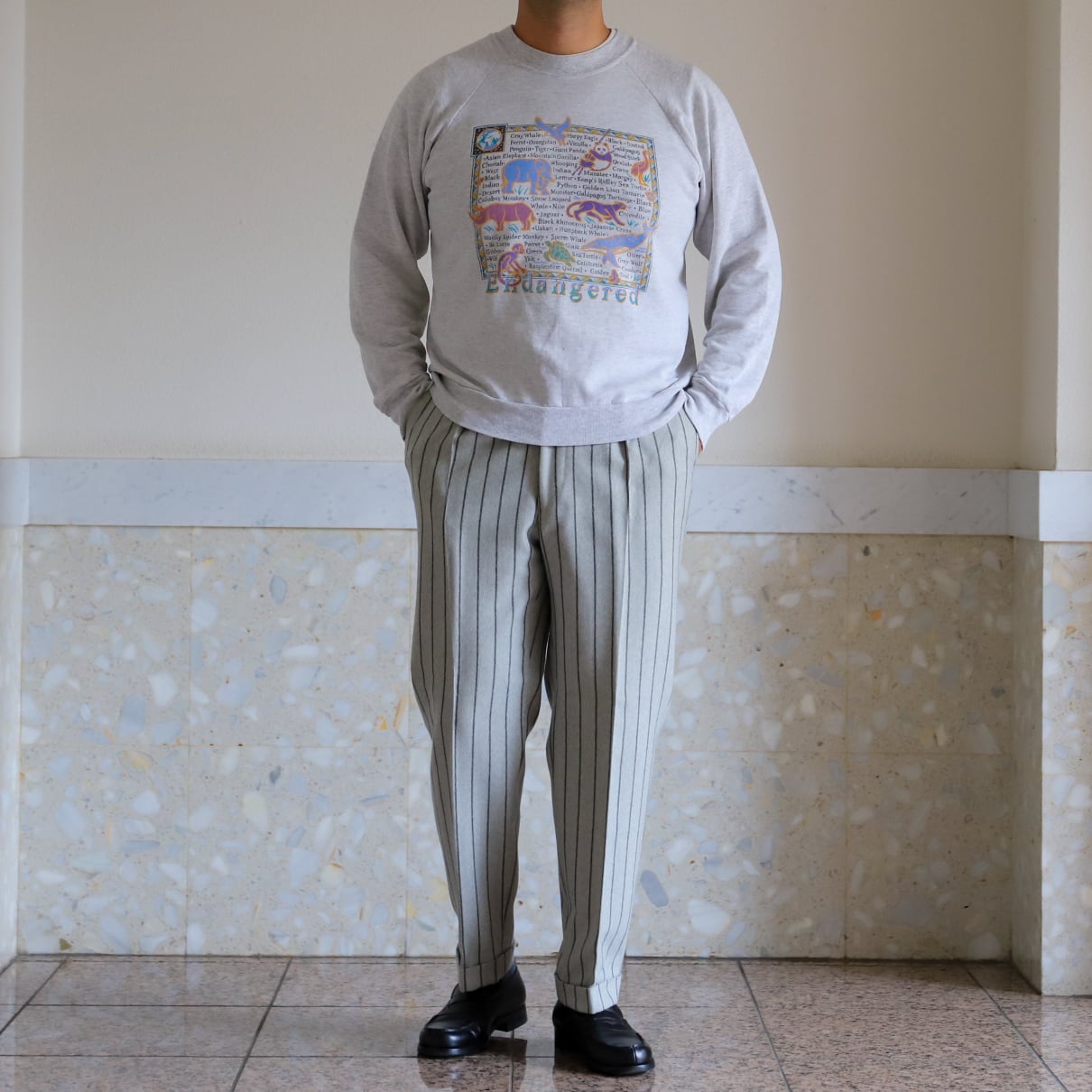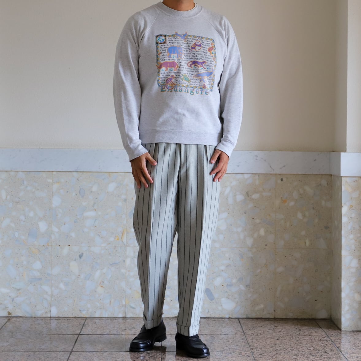 アメリカのフリーマーケットでこのスウェットを見つけた瞬間、ヴィンテージスウェットに似た、異様な雰囲気があり日本へ持ち帰って来た、運命的な1着です。