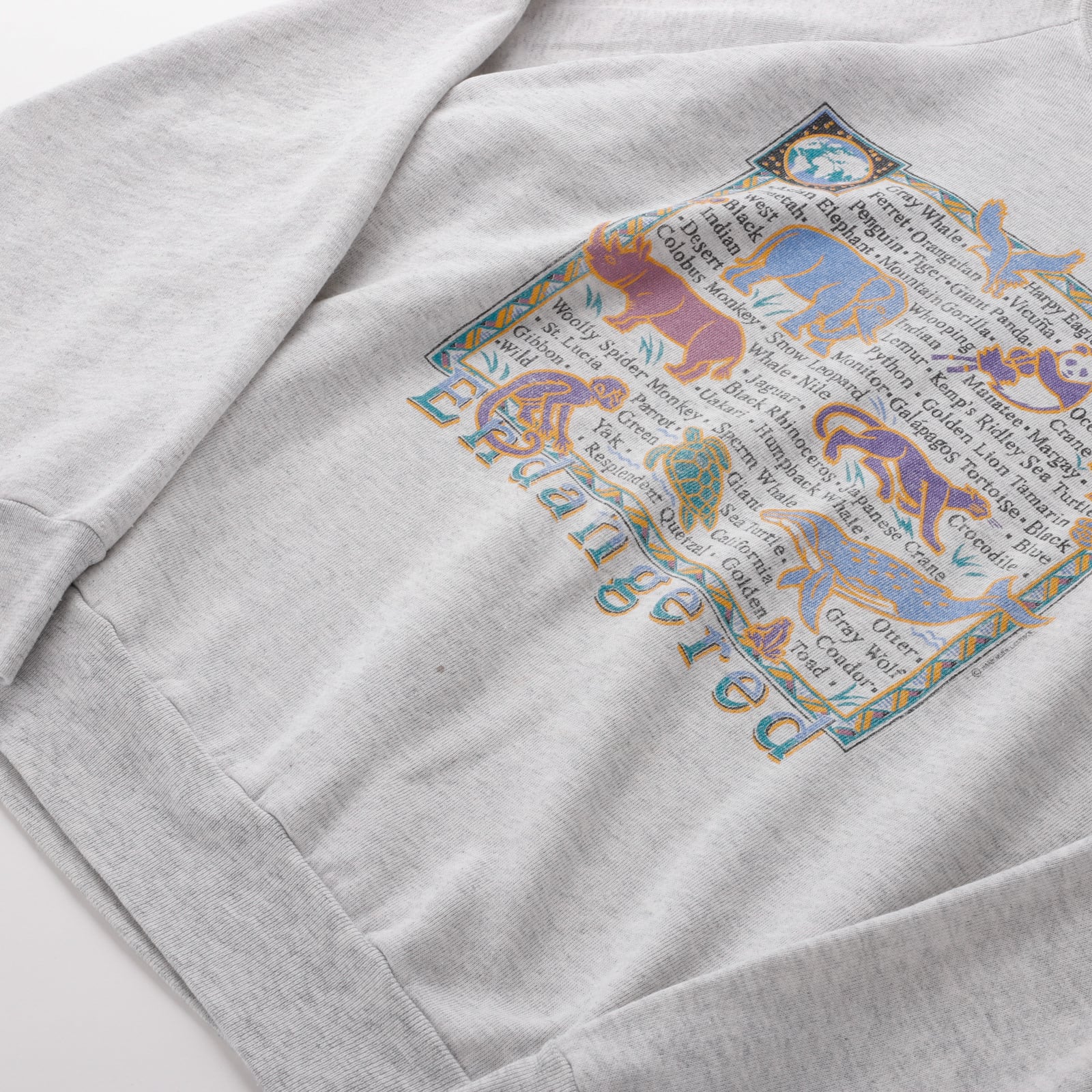 【極美品】90s Vintage raglan sweatshirt "animals" big size rare item Made in USA /80年代 ヴィンテージ スウェットトレーナー ラグラン袖 USA製 ビッグサイズ アニマル 希少 サイズXL