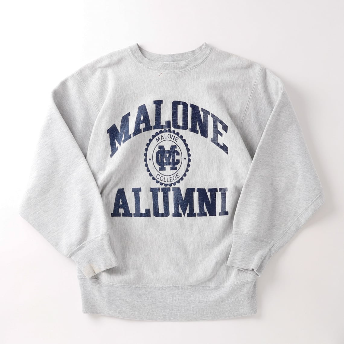 【逸品】80s champion Reverse Weave Crew "MALONE ALUMMI" Vintage sweat mint condition made in USA /80年代 ヴィンテージ チャンピオン リバースウィーブ スウェット トレーナー カレッジ サイズXL グレー アメリカ製