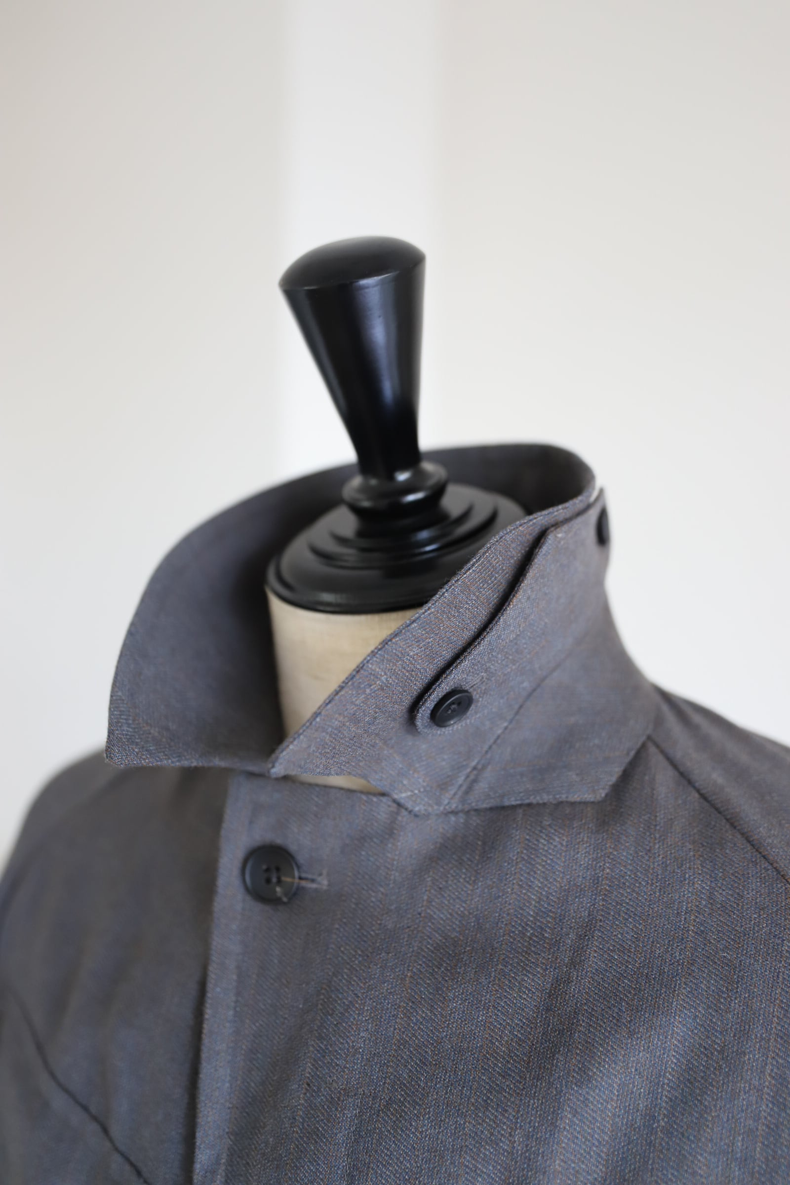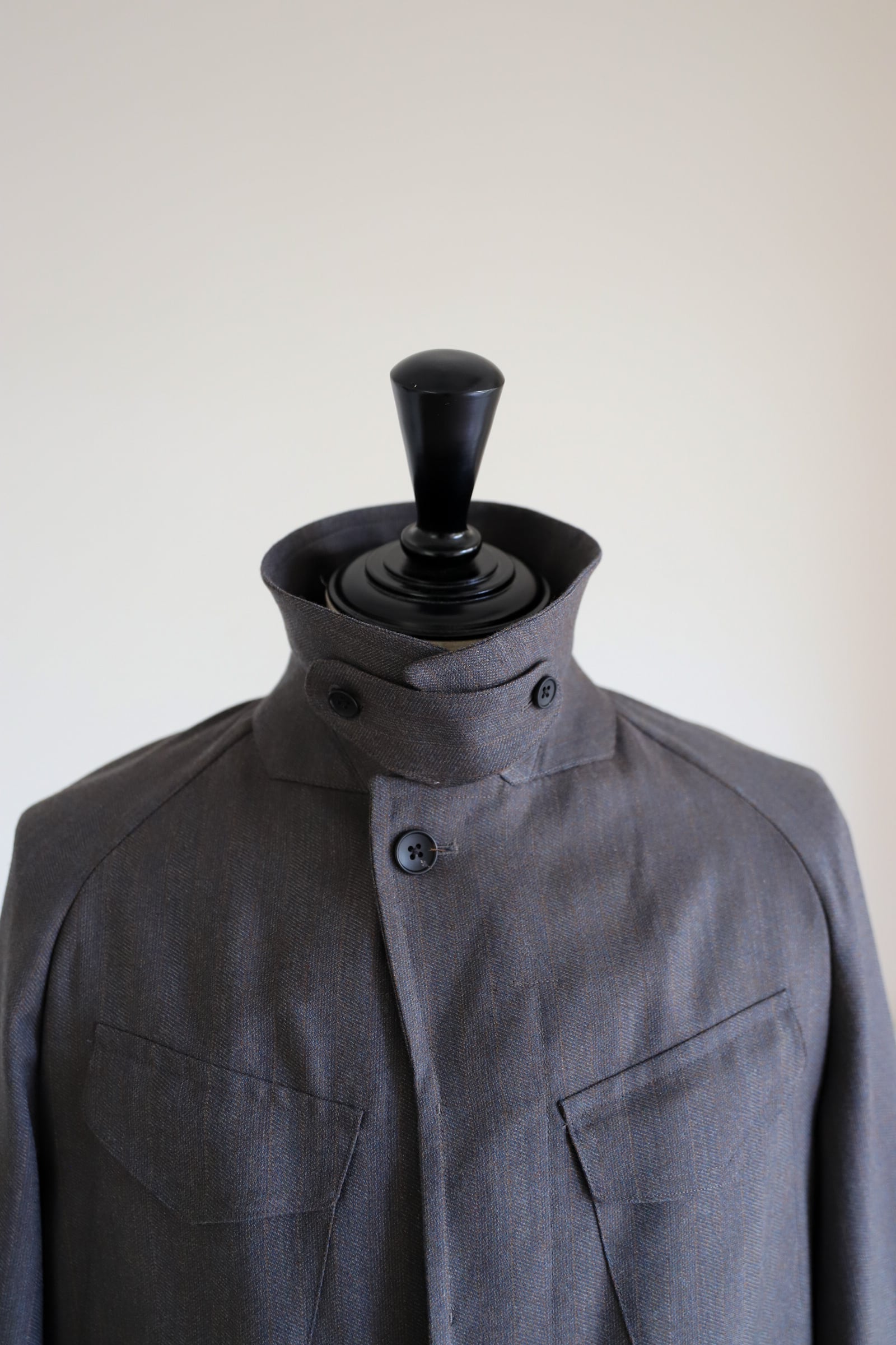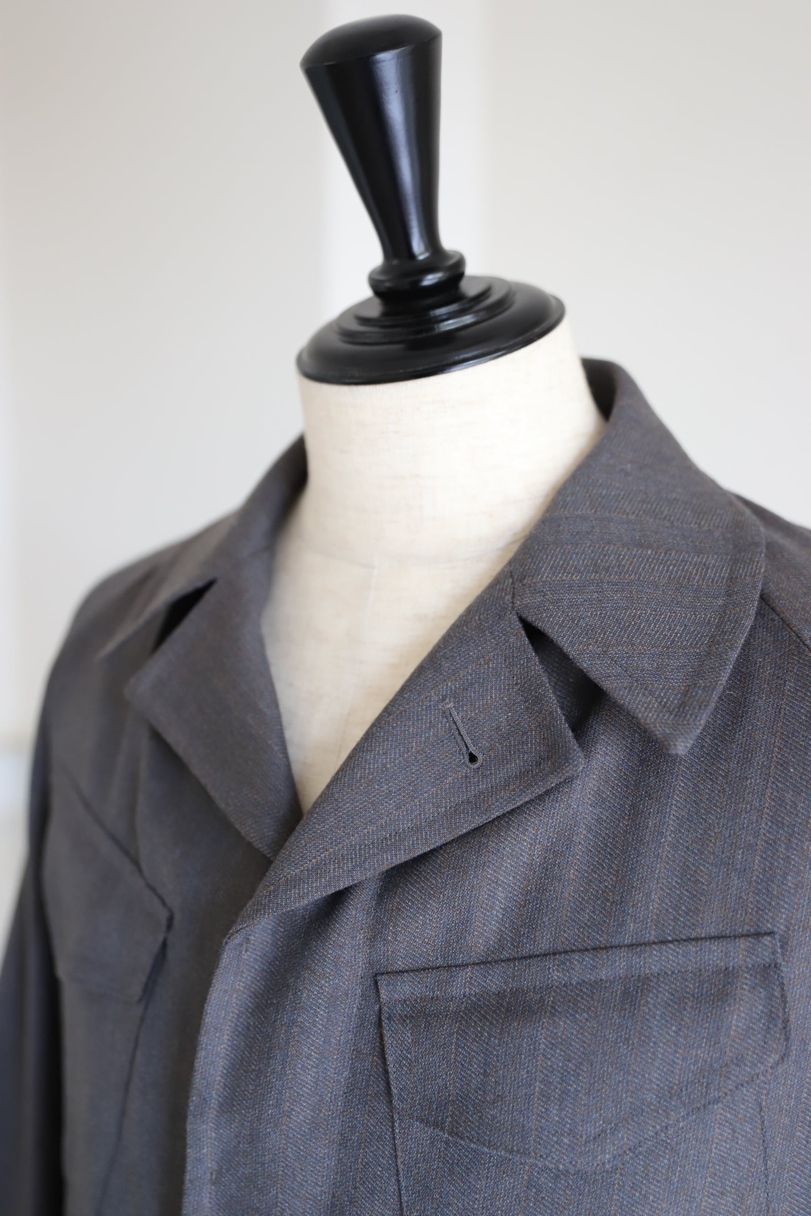 【新品】MINTENS Vintage England wool Fabric military field coat made in JAPAN /英国製 ヴィンテージ生地 ウール ミリタリー フィールドコート 日本製 実寸XL グレー ストライプ