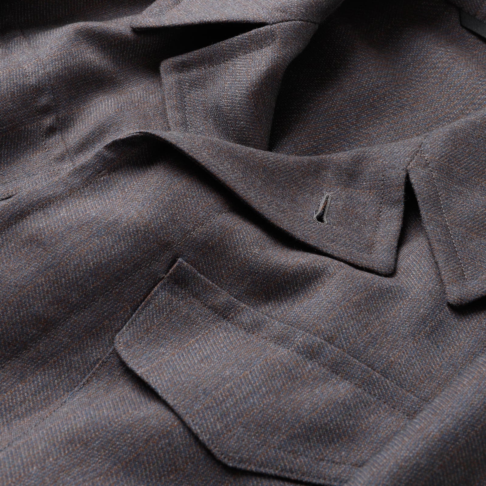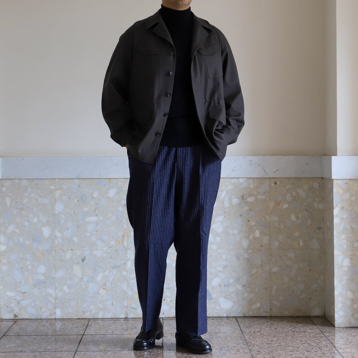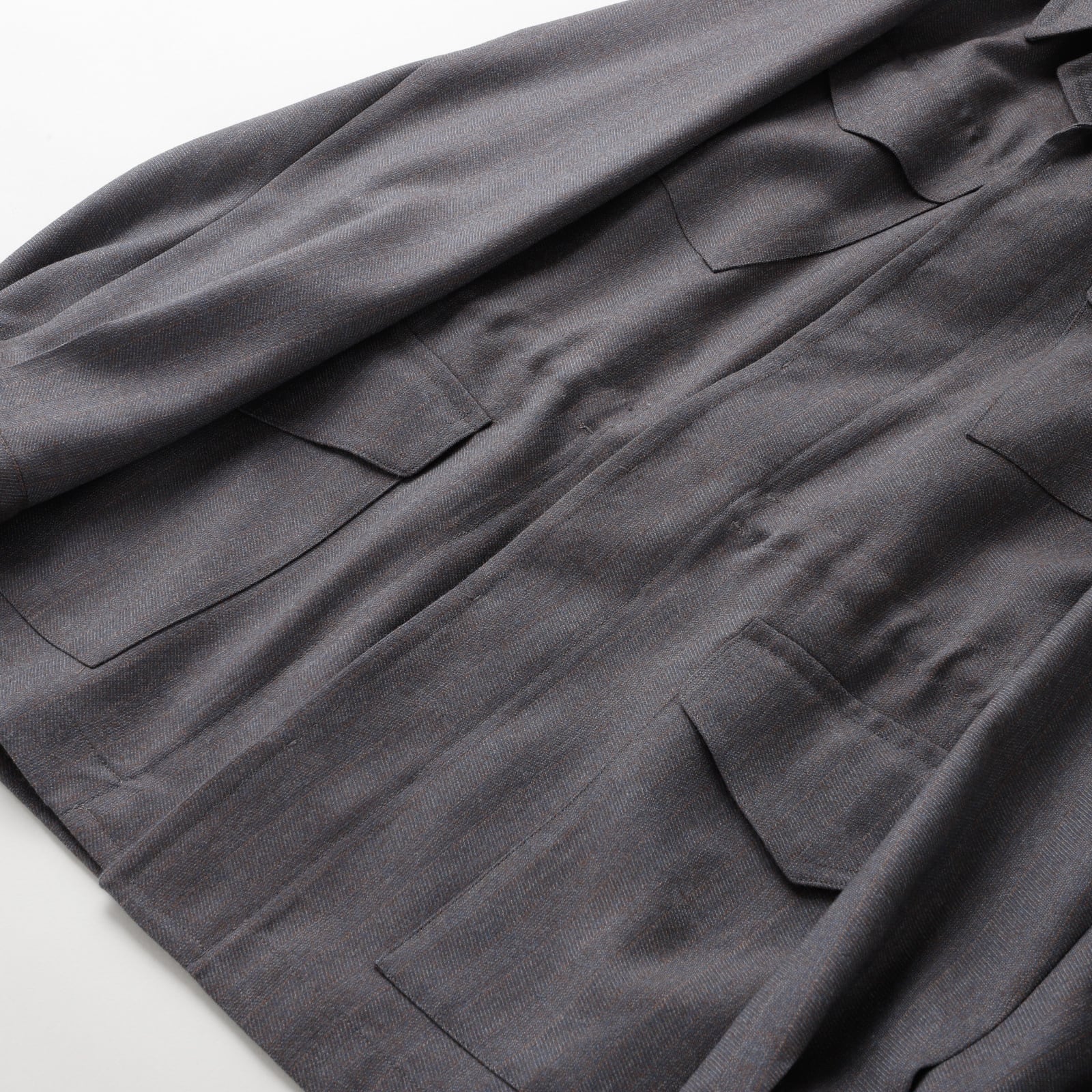 【新品】MINTENS Vintage England wool Fabric military field coat made in JAPAN /英国製 ヴィンテージ生地 ウール ミリタリー フィールドコート 日本製 実寸XL グレー ストライプ
