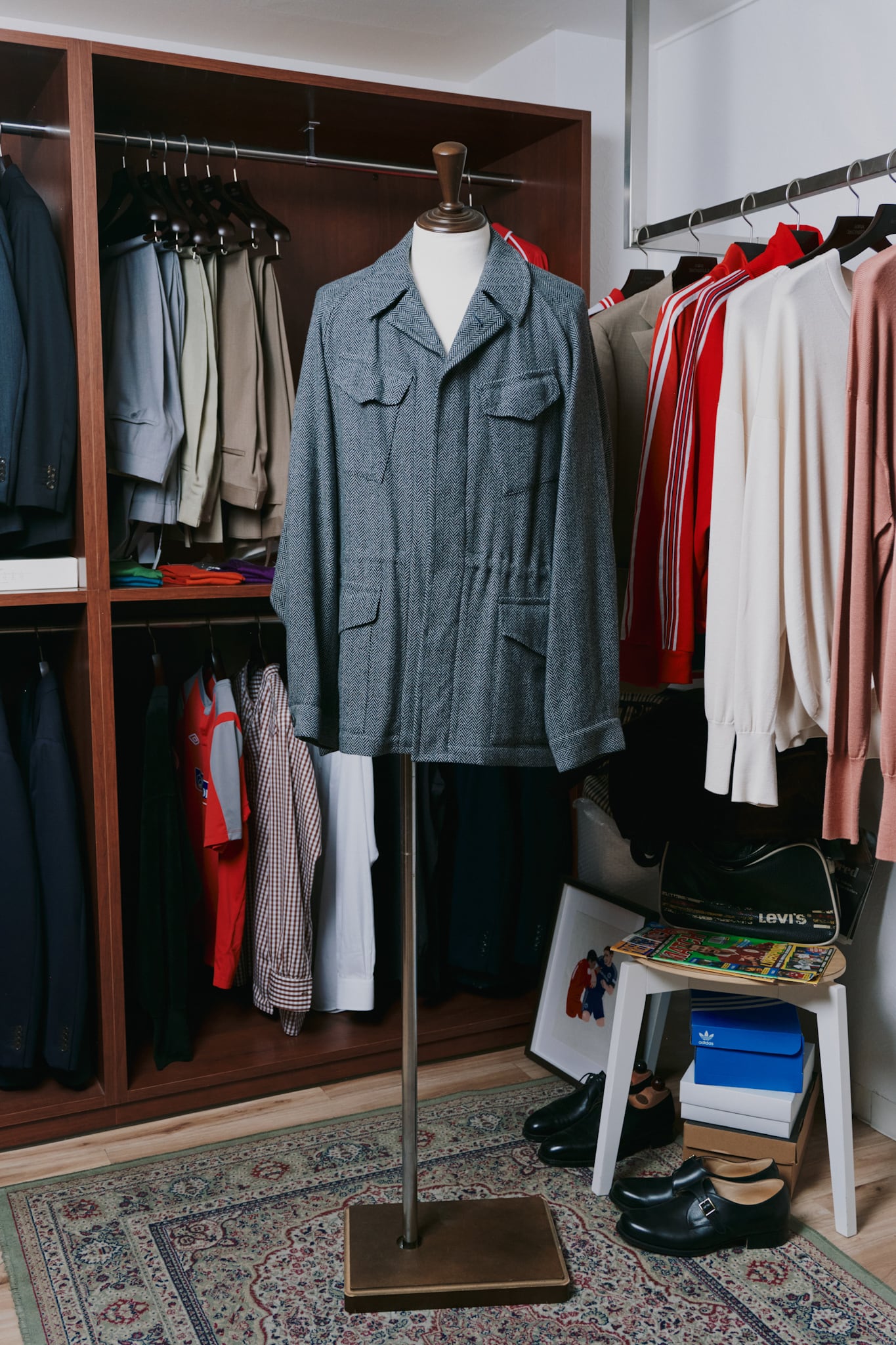 ラペルの太さやシルエットなど、身幅にややゆとりを持たせつつ着丈もアレンジ。