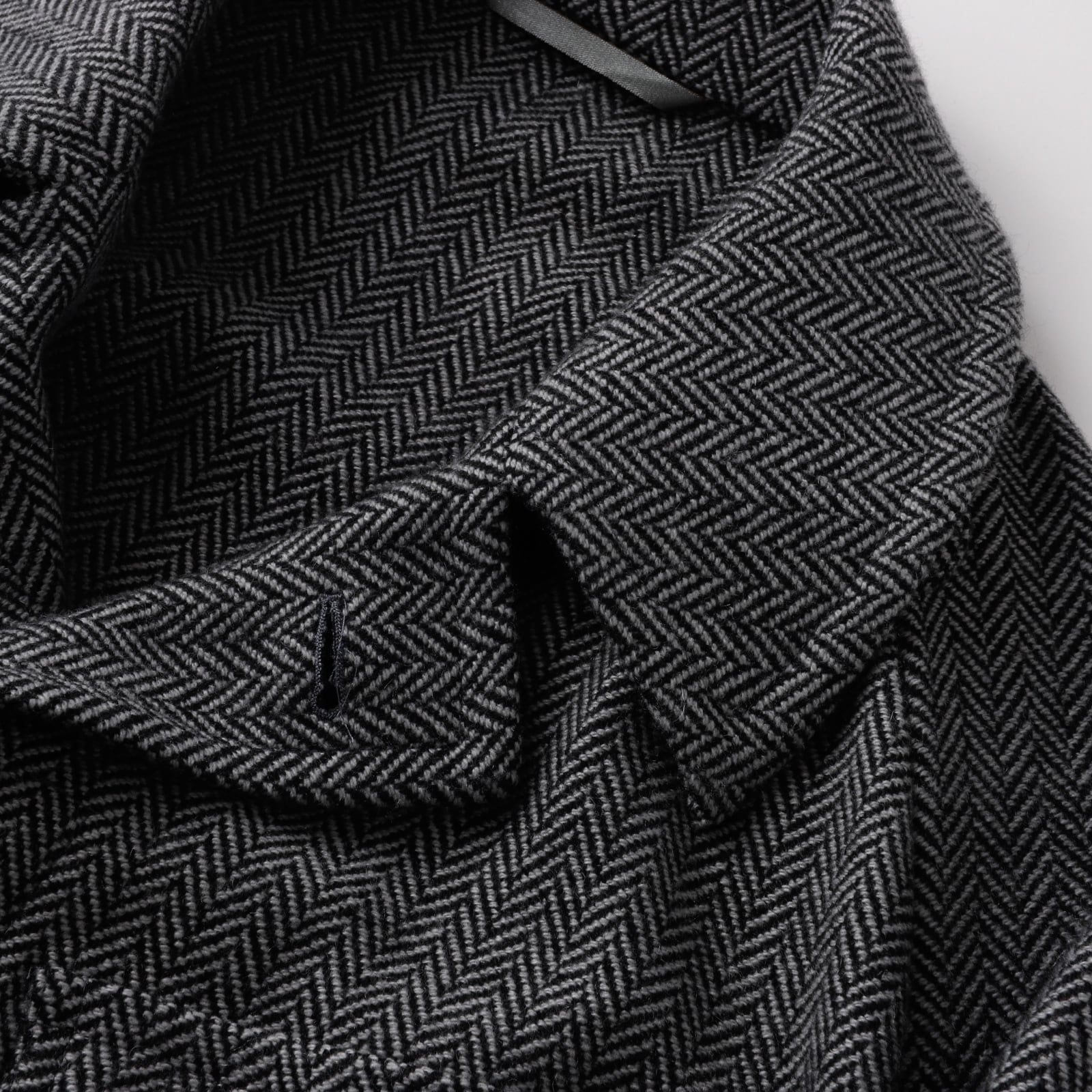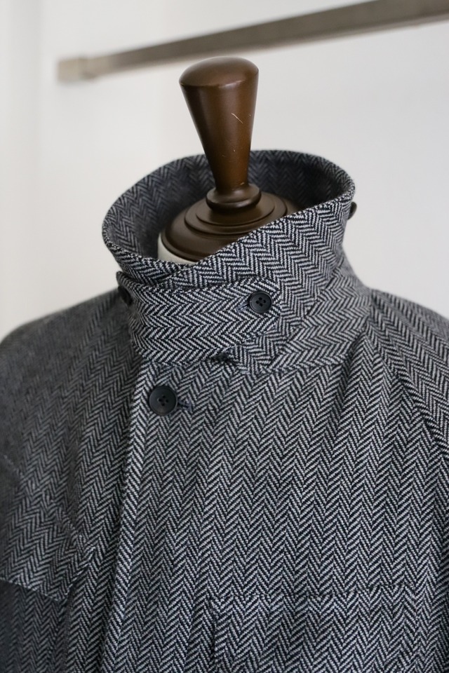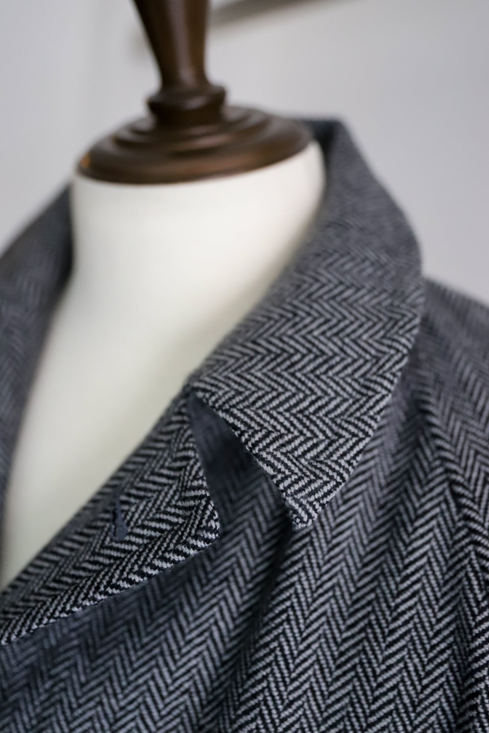 今回新作アイテムとして60年代イタリア製ヴィンテージ生地、カシミヤ ヘリンボーン素材を使用し、ヴィンテージミリタリー フィールドコートを製作しました。