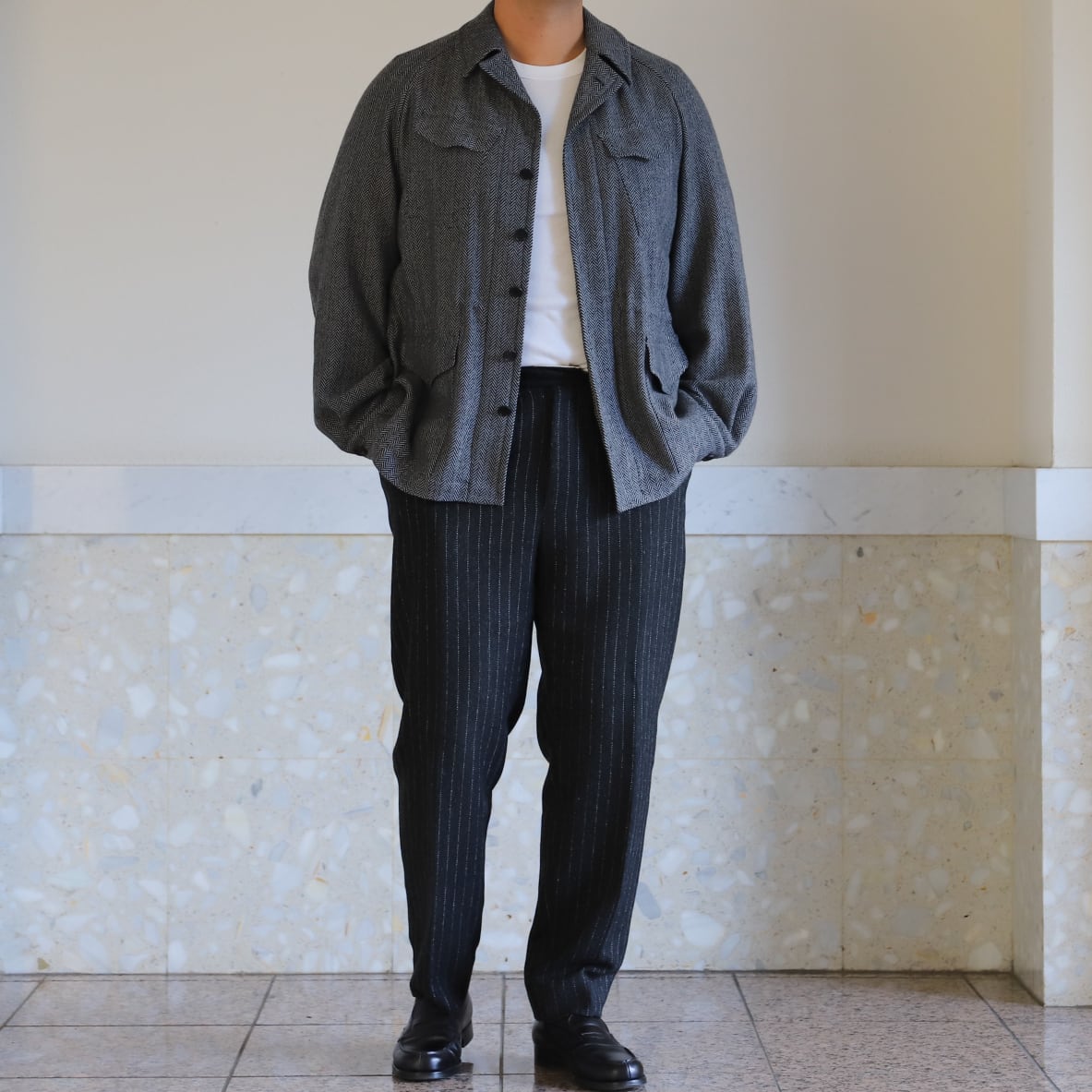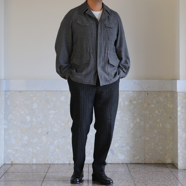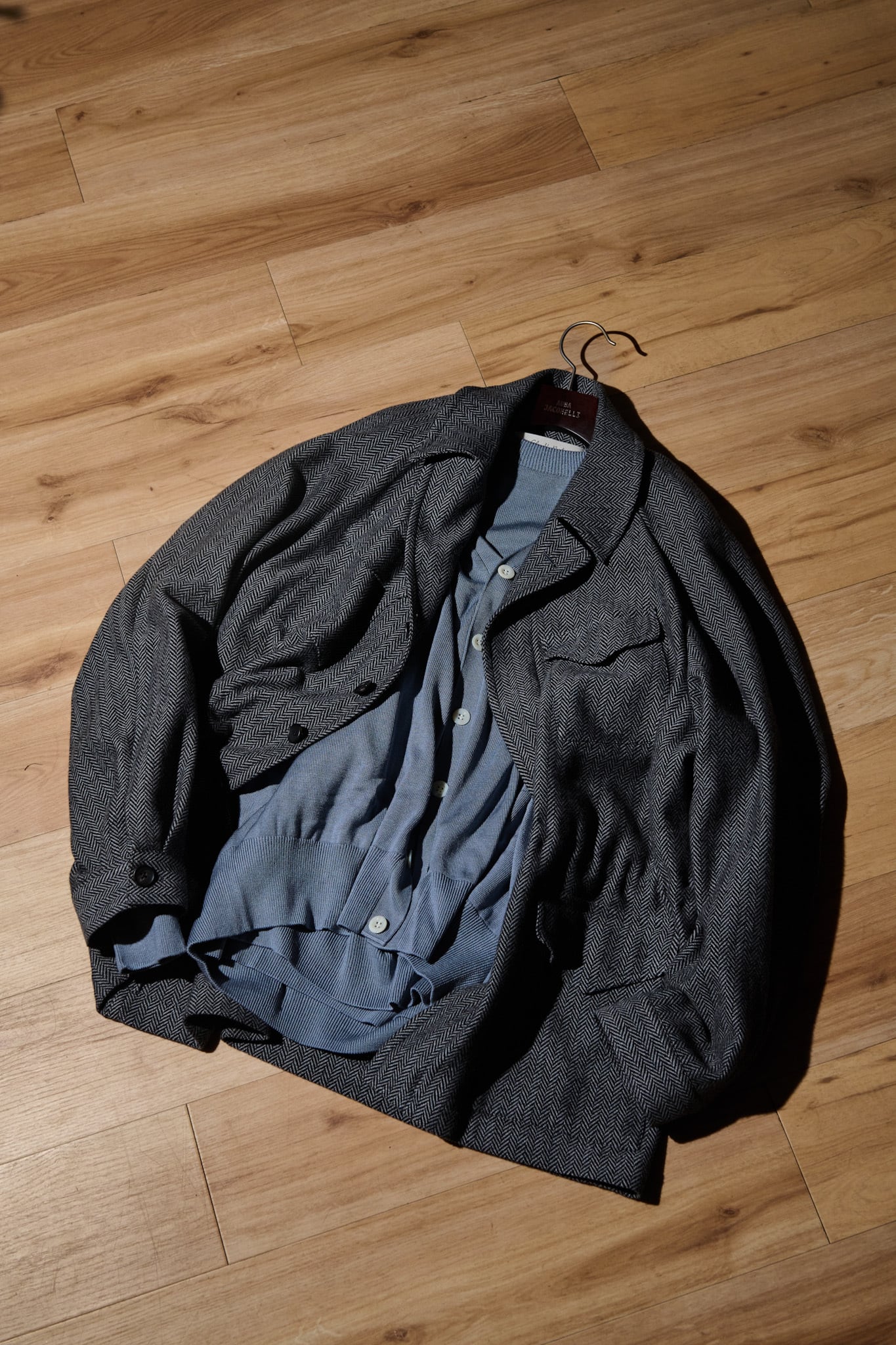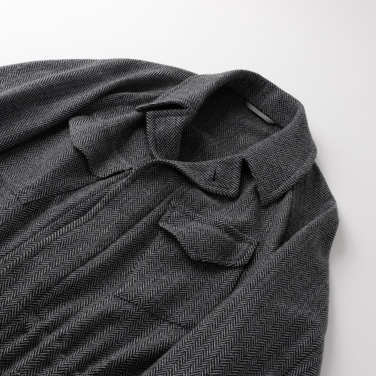 今回新作アイテムとして60年代イタリア製ヴィンテージ生地、カシミヤ ヘリンボーン素材を使用し、ヴィンテージミリタリー フィールドコートを製作しました。