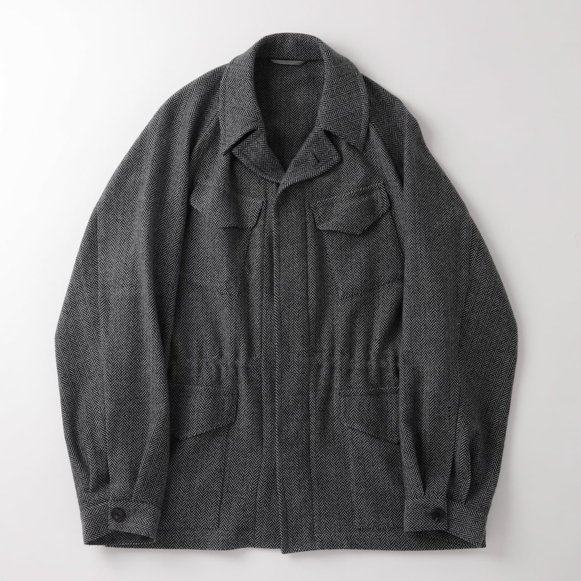 【新品】MINTENS Vintage Italy cashmere herringbone Fabric military field jacket made in JAPAN /イタリア製 ヴィンテージ生地 カシミヤ ヘリンボーン ミリタリー フィールドコート 日本製 実寸XL