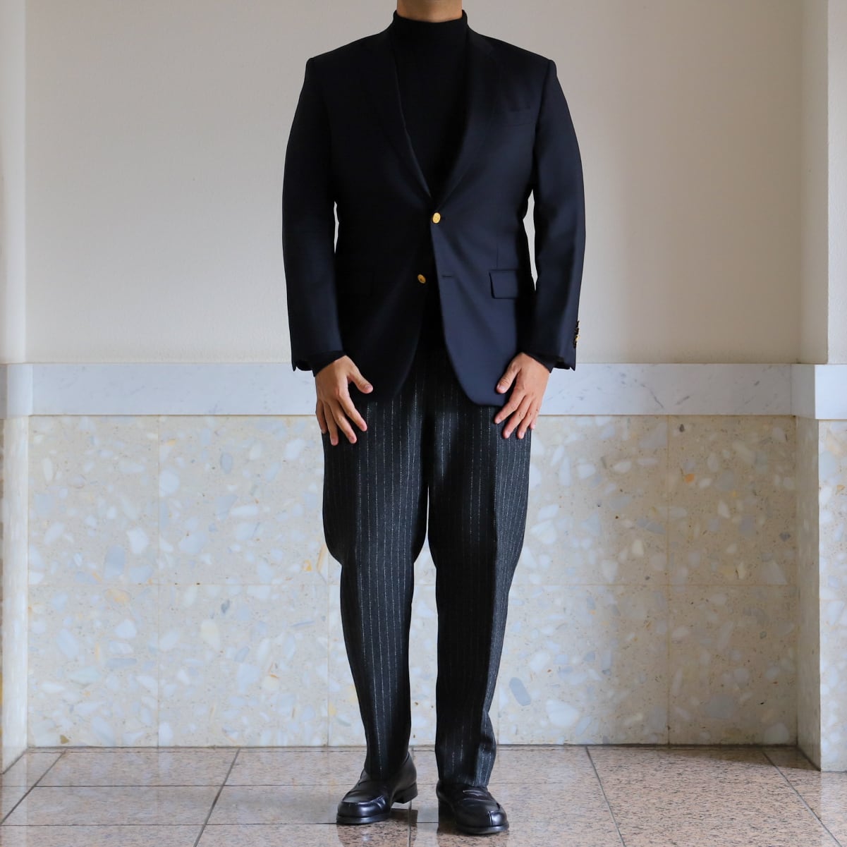フォーマル合わせでも素敵ですが、サラッと羽織ってスラックスやデニム、ミリタリー パンツなどに合わせるのも抜群。