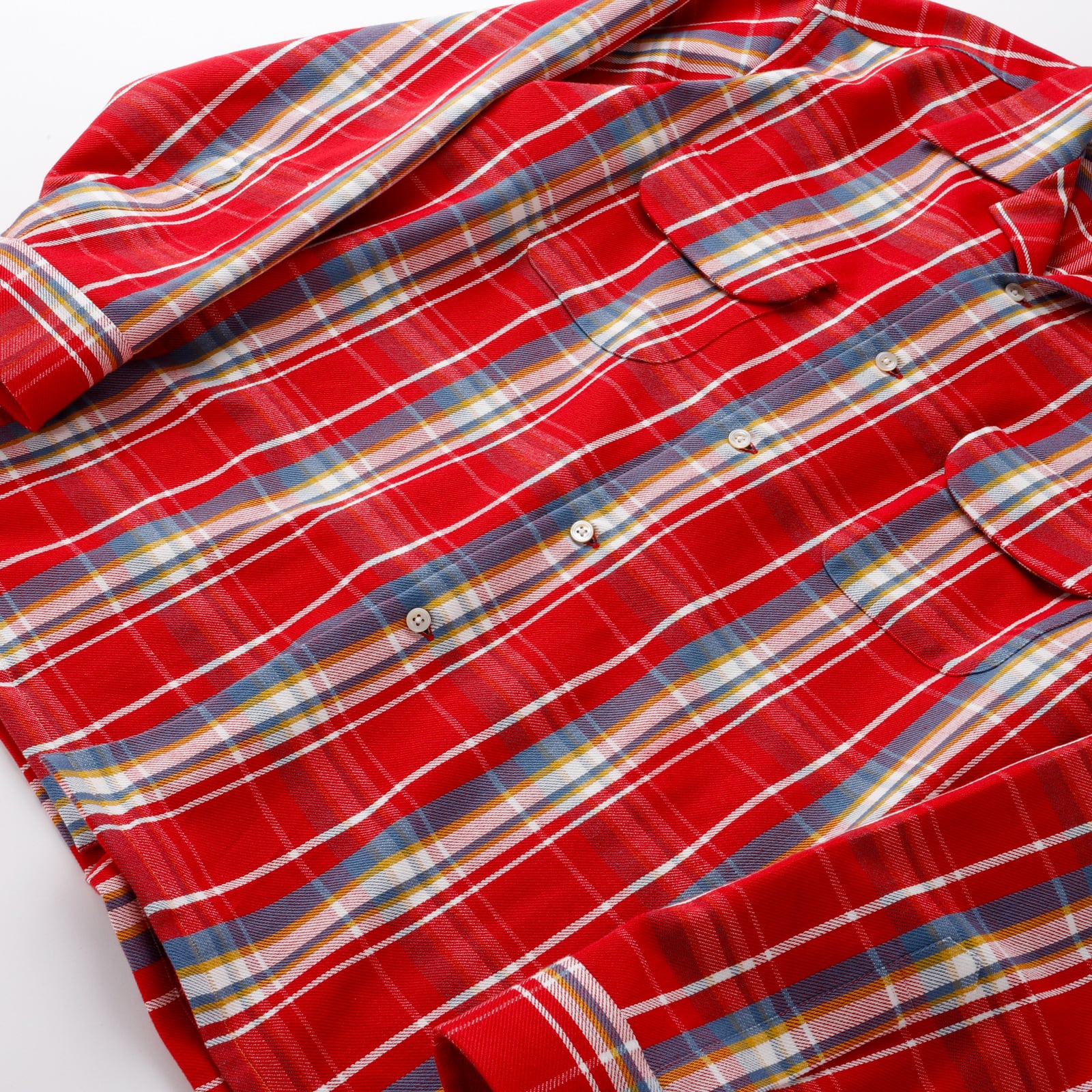 【新品】MINTENS 1960s vintage cotton heavy flannel shirts made in JAPAN fabrics made in JAPAN/ 日本製 ヴィンテージ生地 コットン ヘビー フランネル オープンカラー シャツ オリジナルブランド 1960年代シルエット レッド サイズ①、②