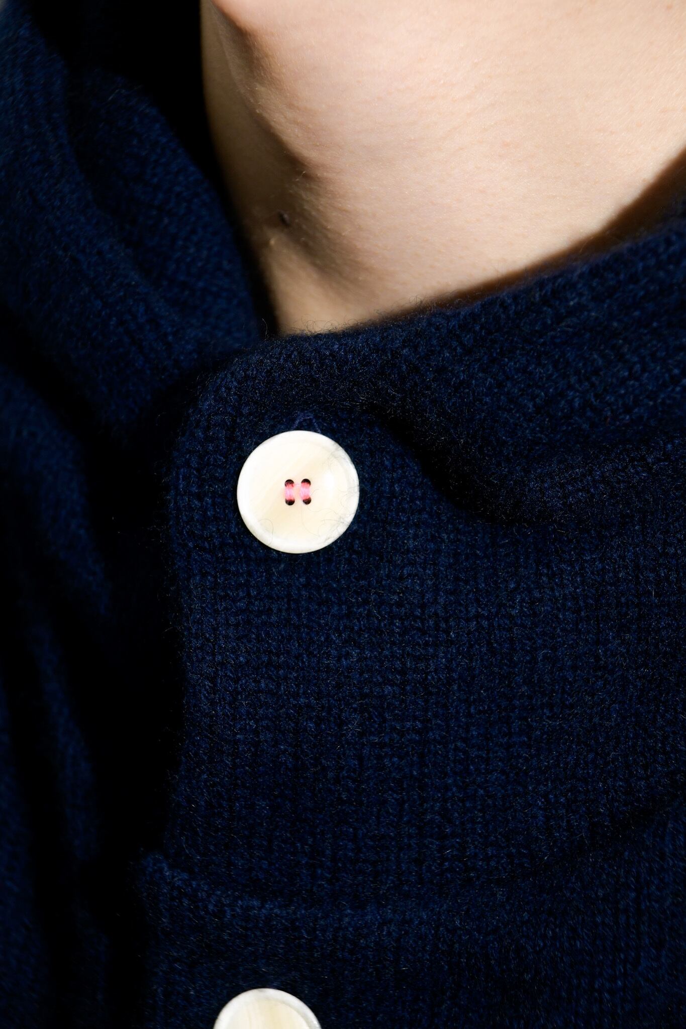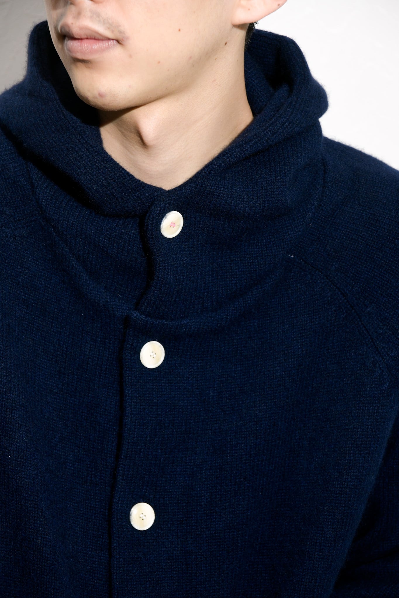 【新品】SUNSHINE+CLOUD MINTENS限定品 Special cashmere Knit hood jacket Big size Made in JAPAN / サンシャインプラスクラウド ビッグサイズ カシミヤ フード ニット セーター ネイビー サイズ5 ビッグサイズ 日本製