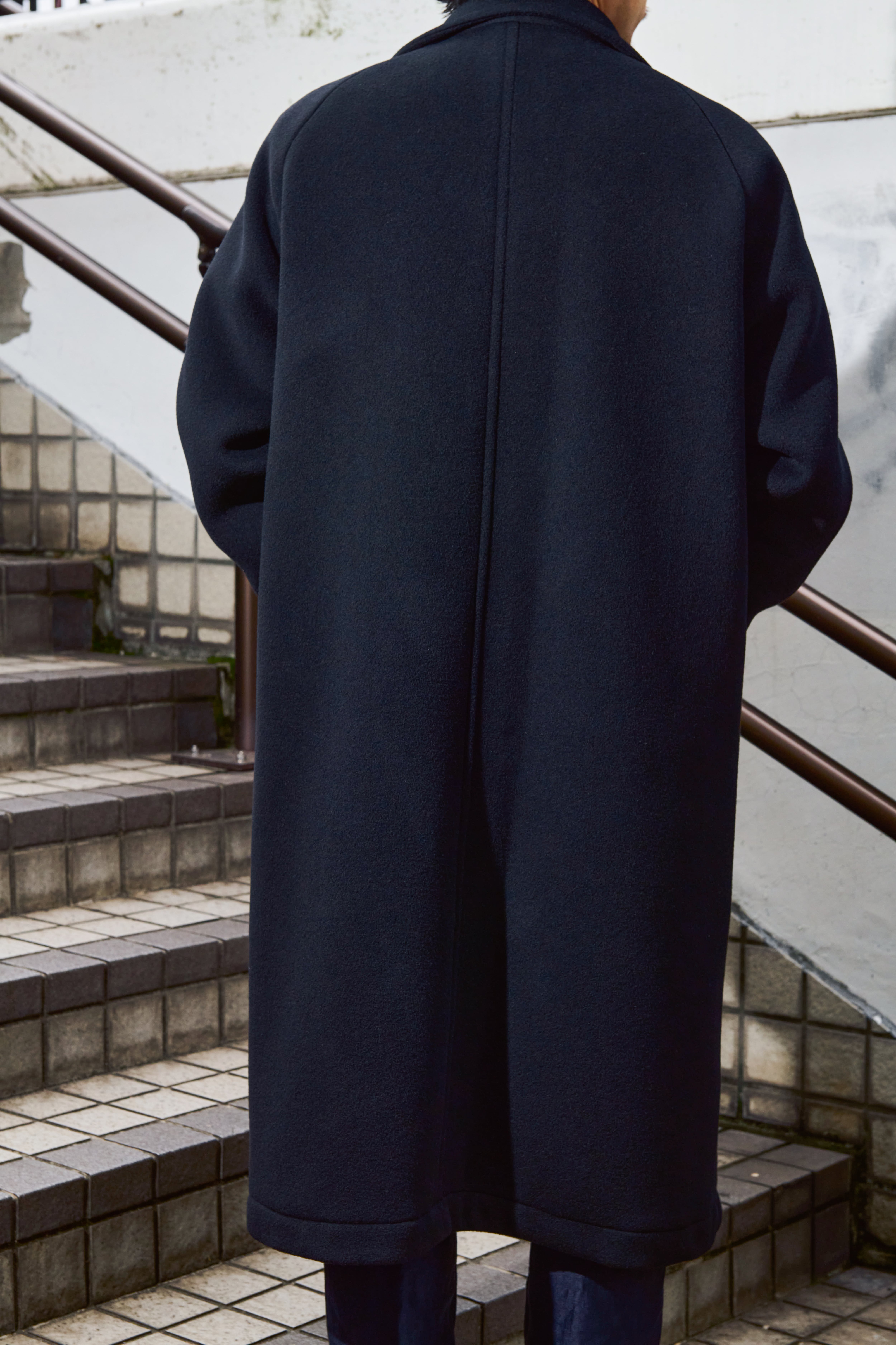 古い年代の英国製 一枚袖コートを参考に、身幅にゆとりを持たせつつ着丈もアレンジ。