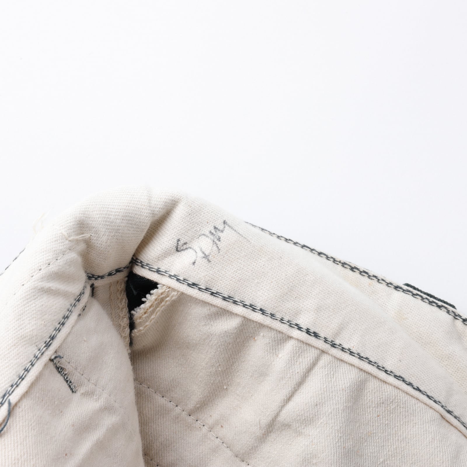 その秀逸なシルエットから、数々のブランドやセレクトショップがこちらの古い年代のパンツをモチーフにスラックスやジャージを仕立てております。