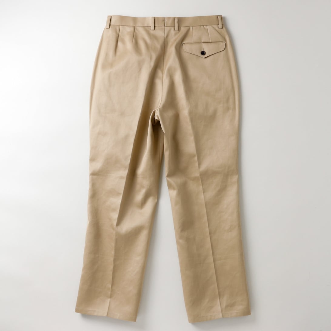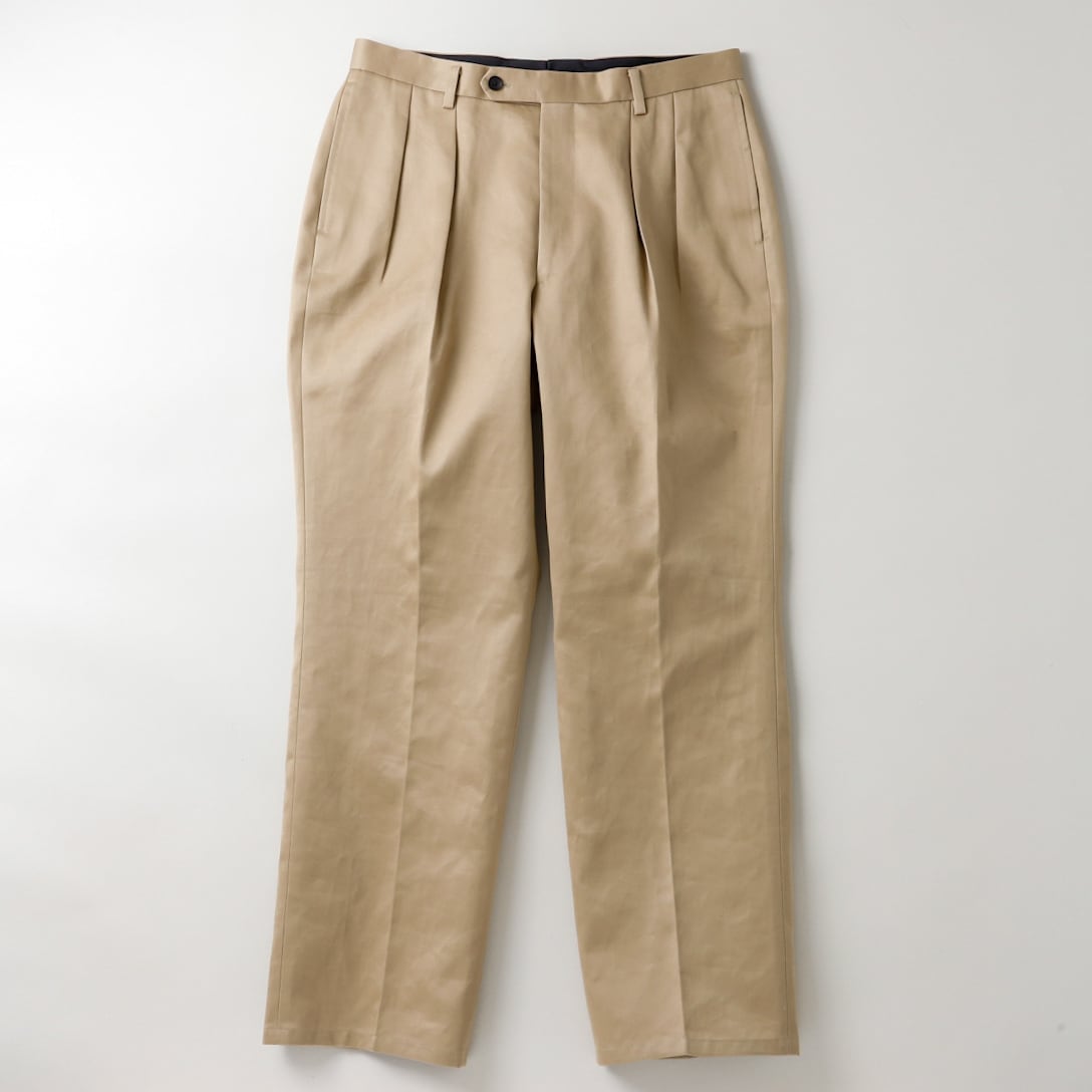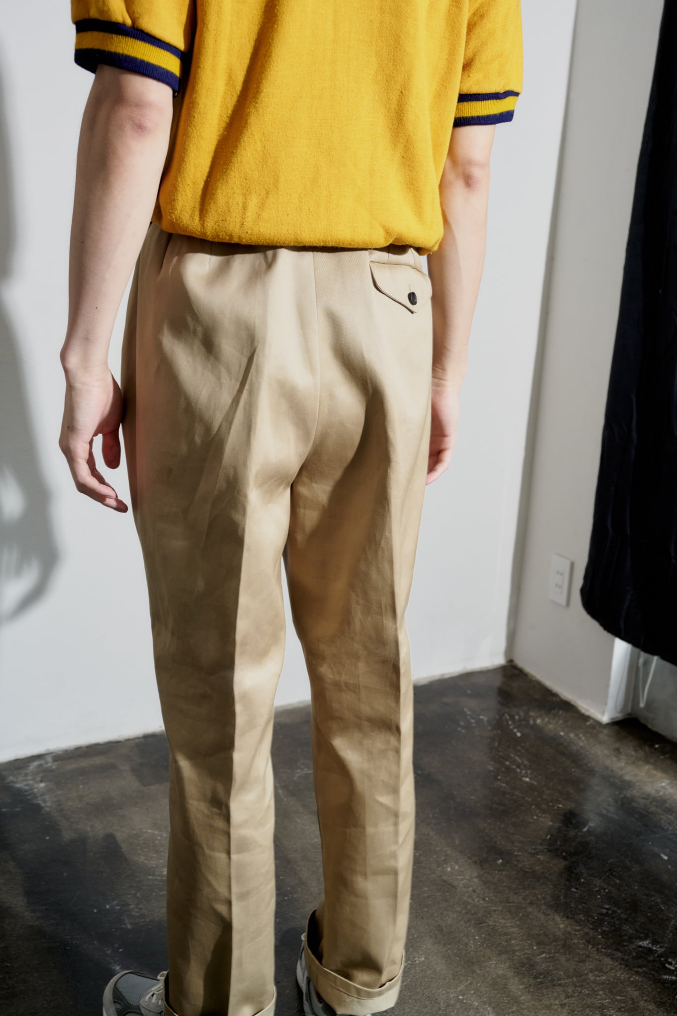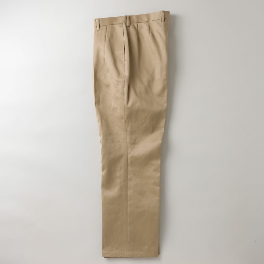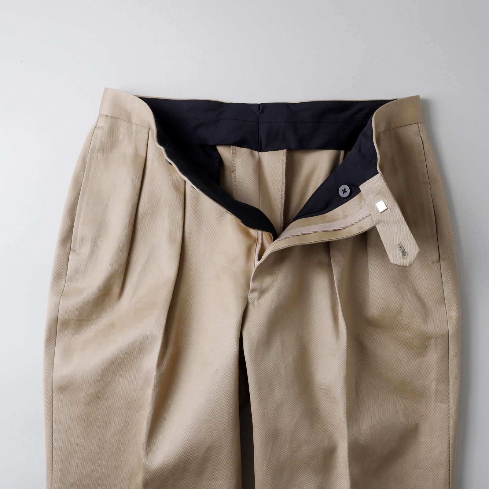 日本製 デッドストック生地を使用した スラックス タック チノパンツ ベージュ