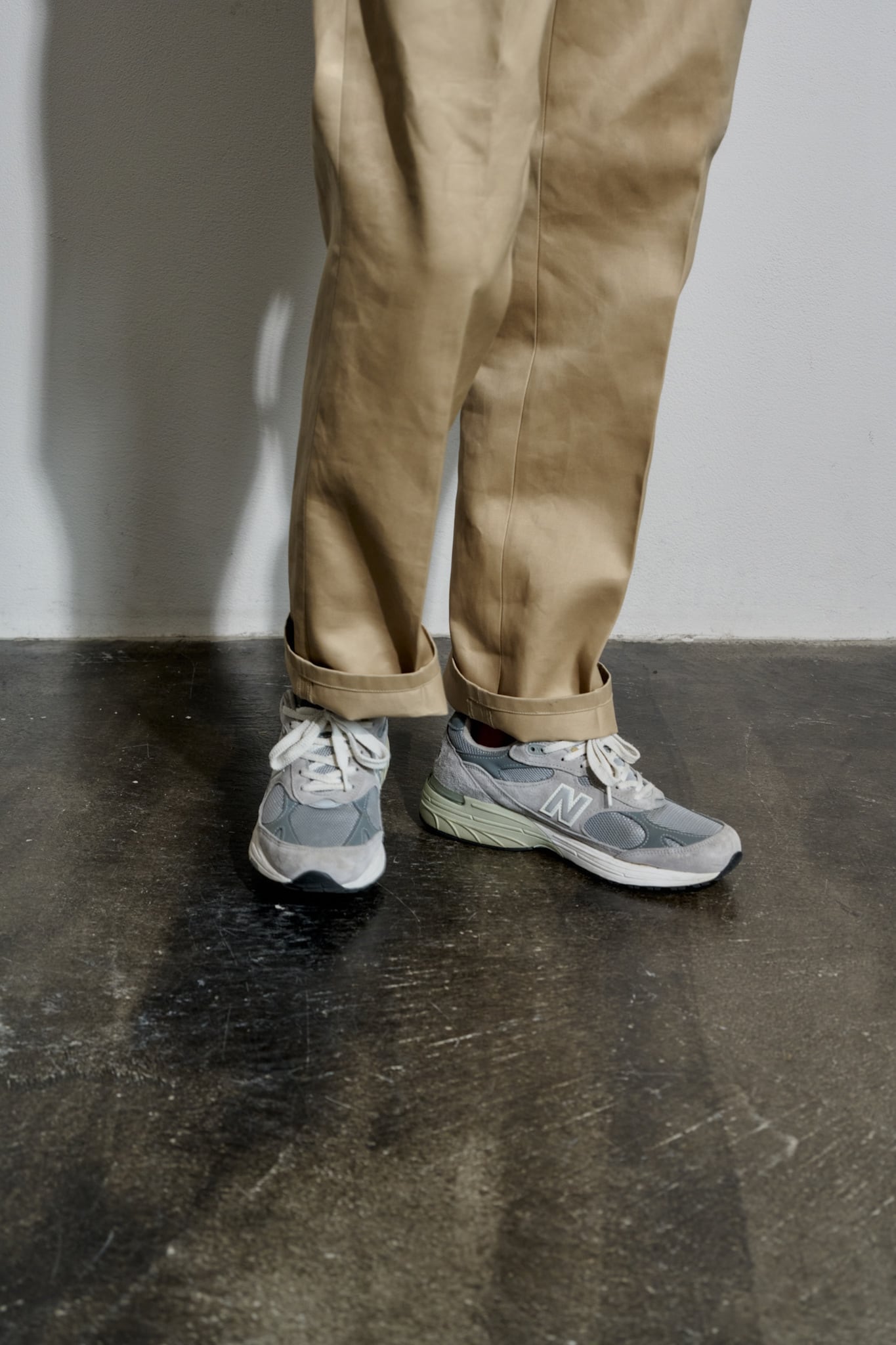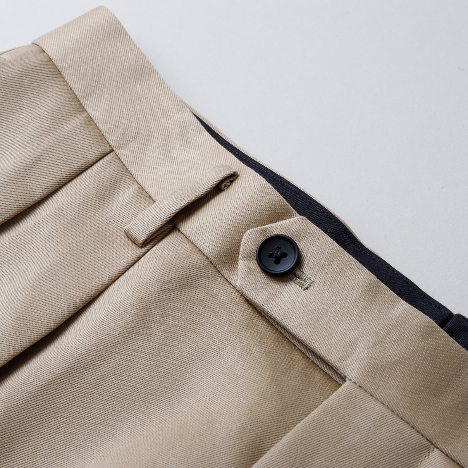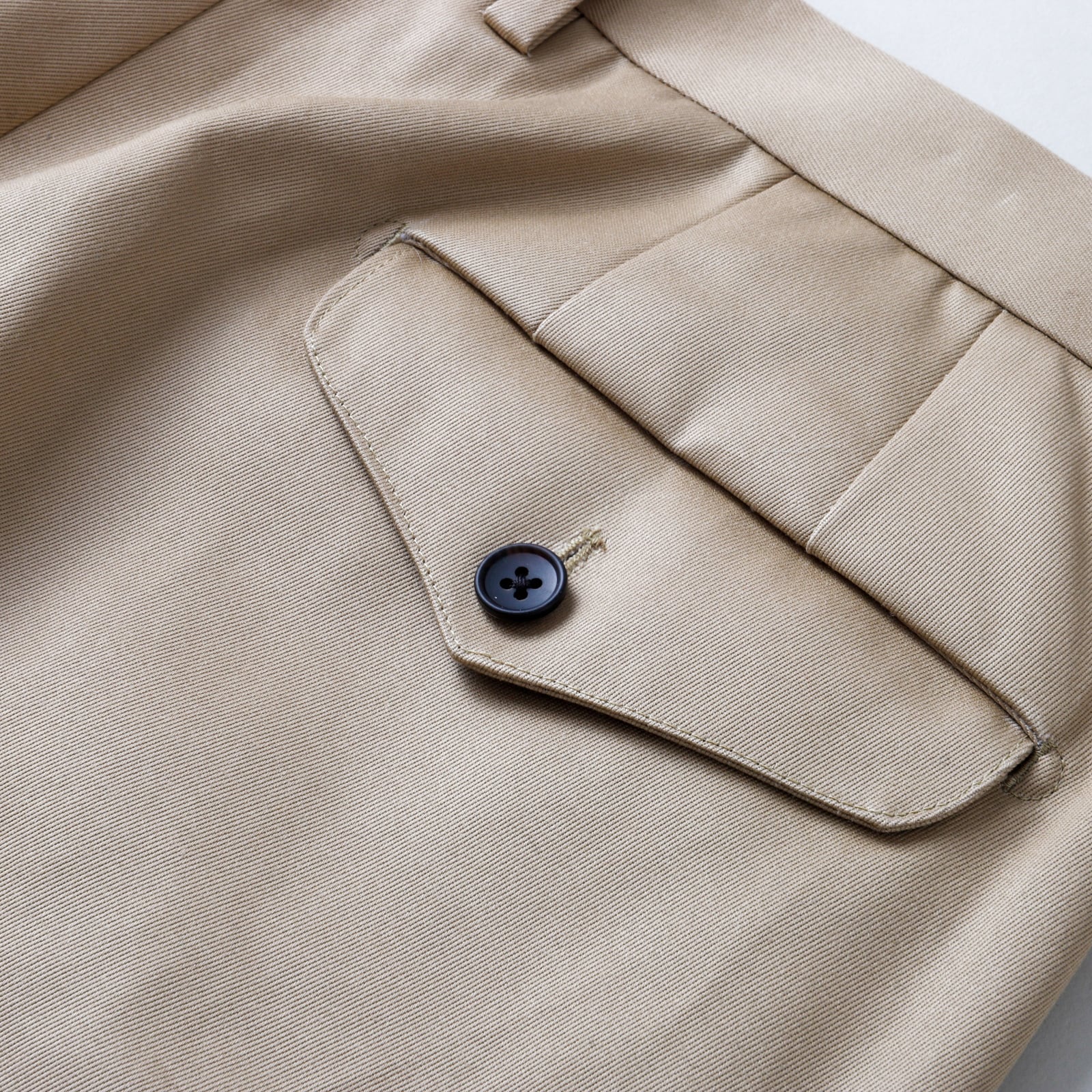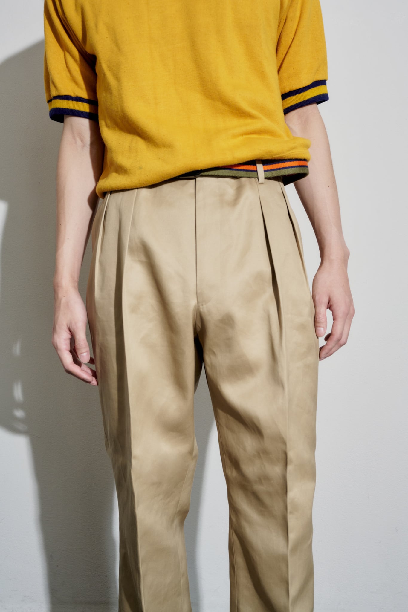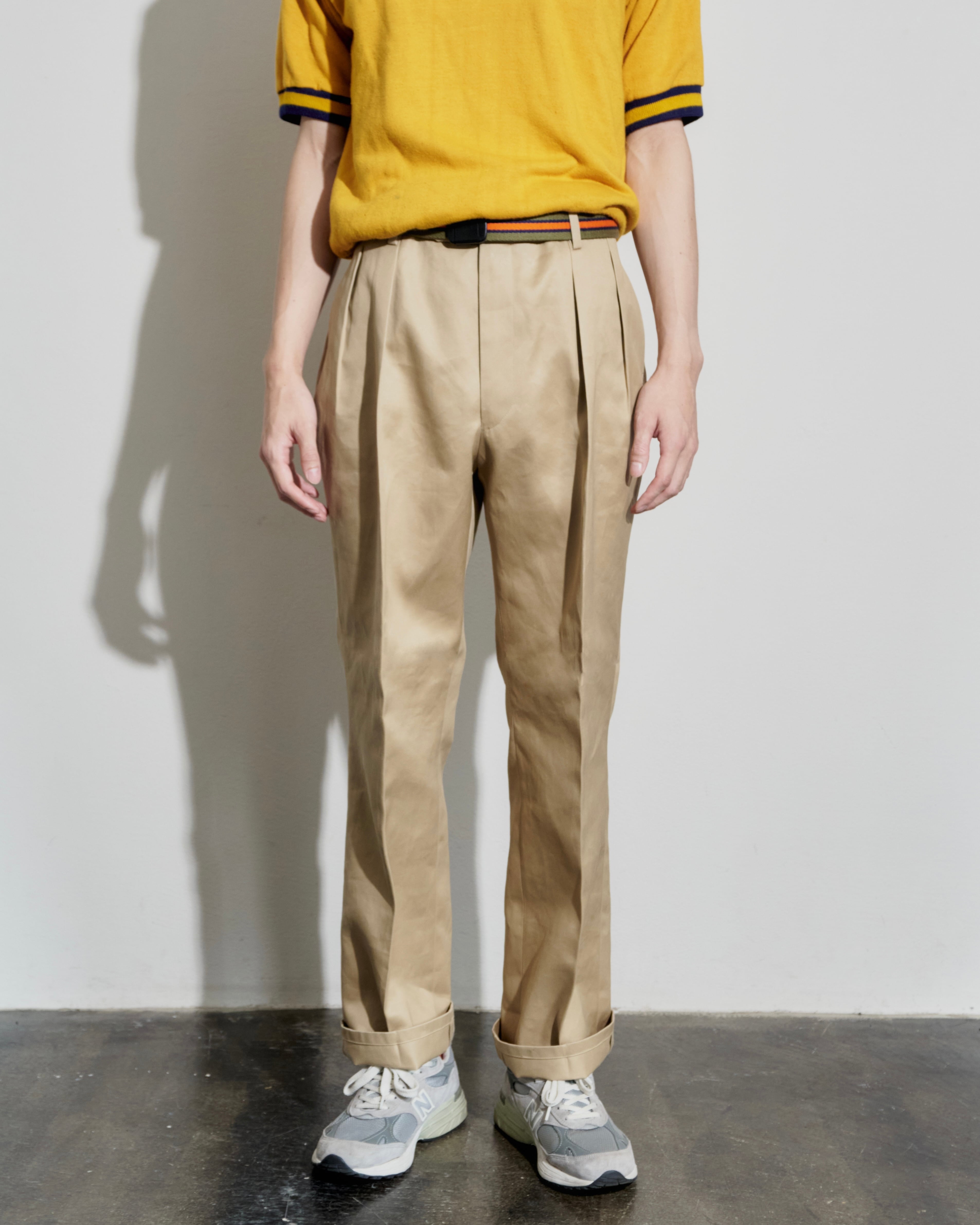日本製 デッドストック生地を使用した スラックス タック チノパンツ ベージュ