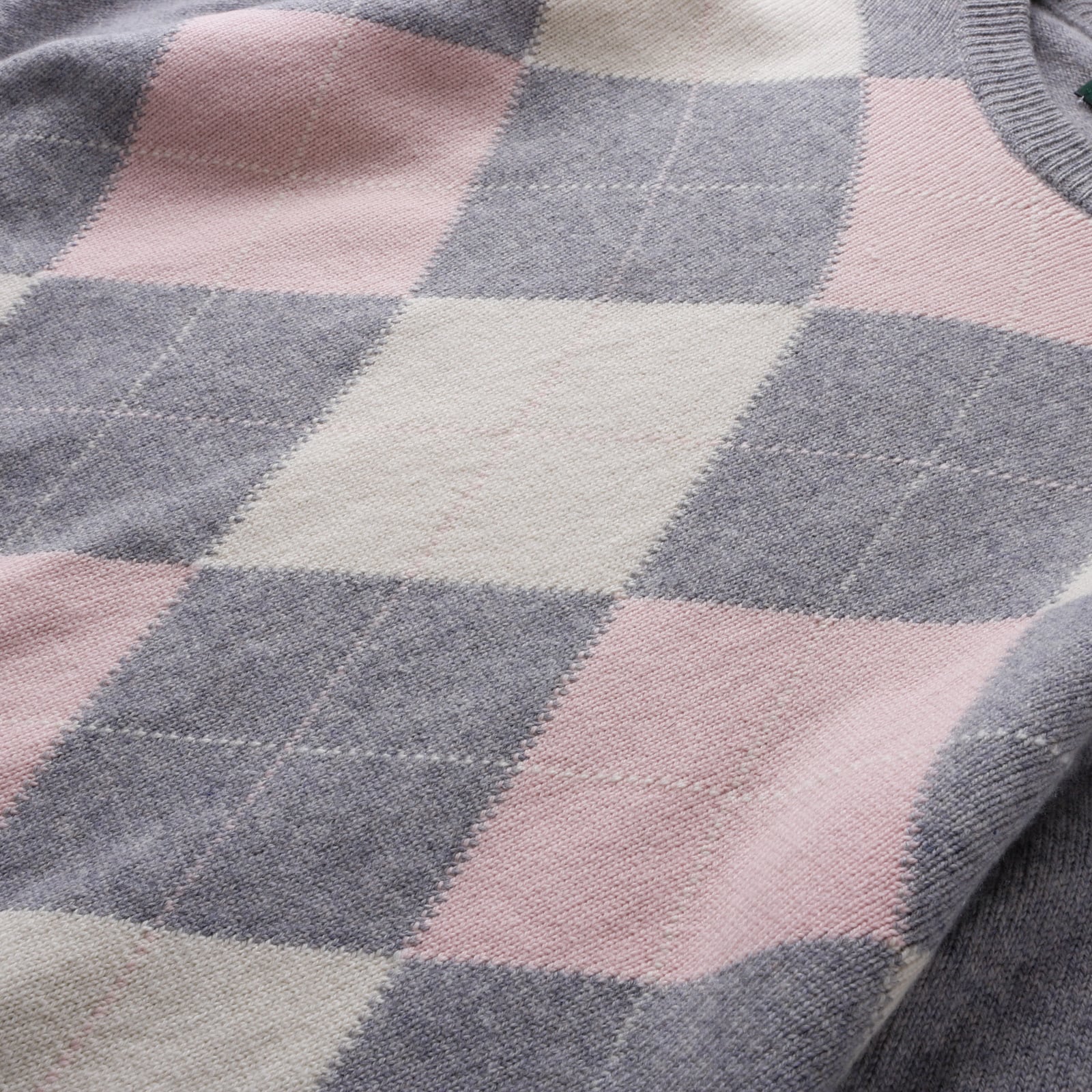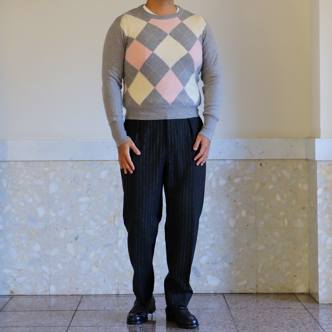 スコットランド製 カシミヤ セーター 実寸サイズM グレー アーガイル柄 定価約6万