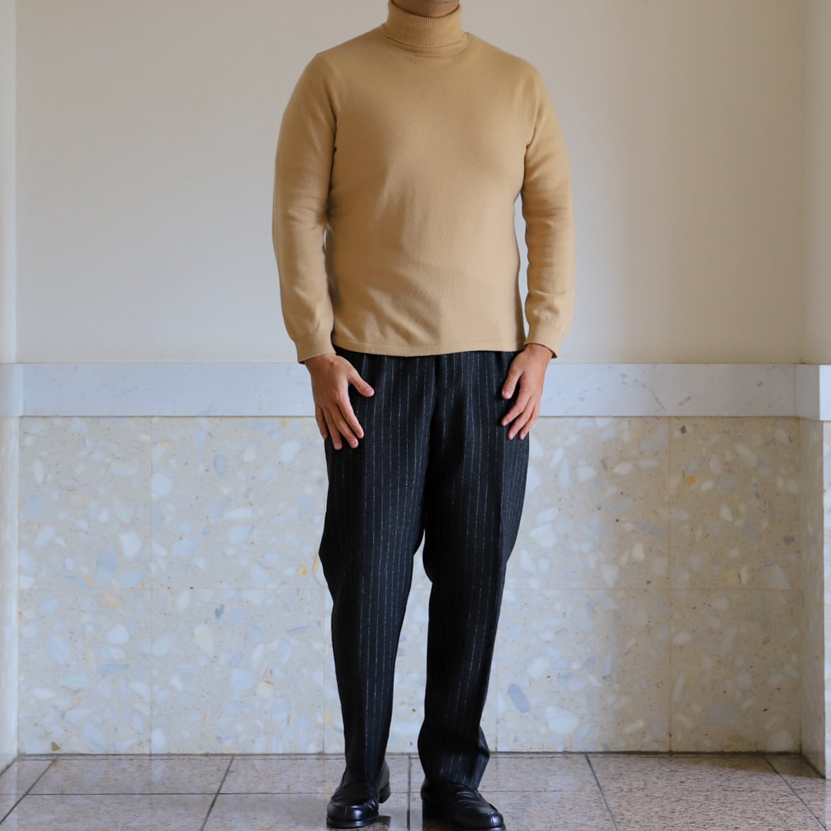 イタリア製 カシミヤ タートルネック セーター 実寸サイズL ベージュ